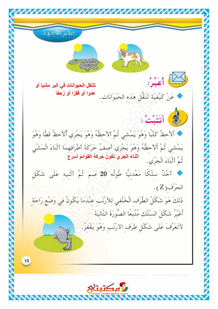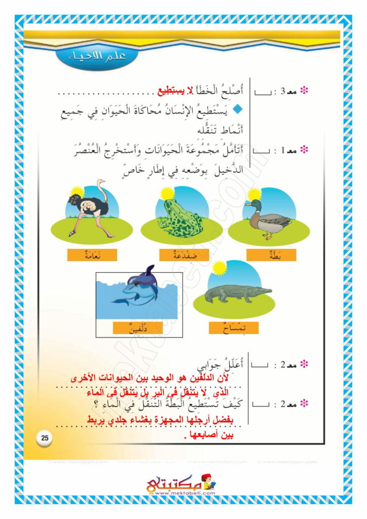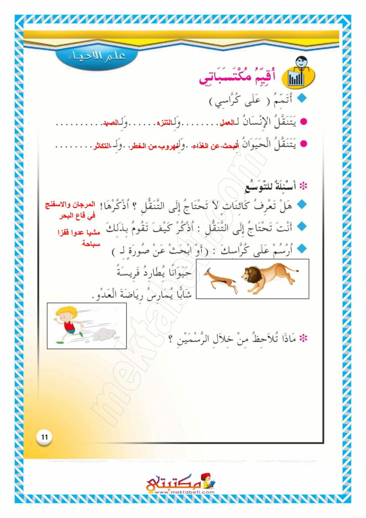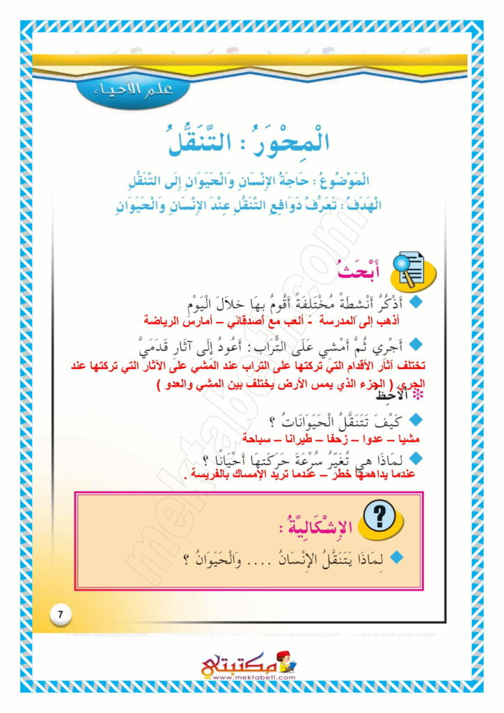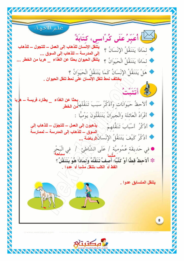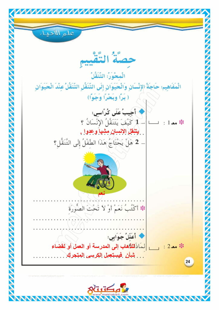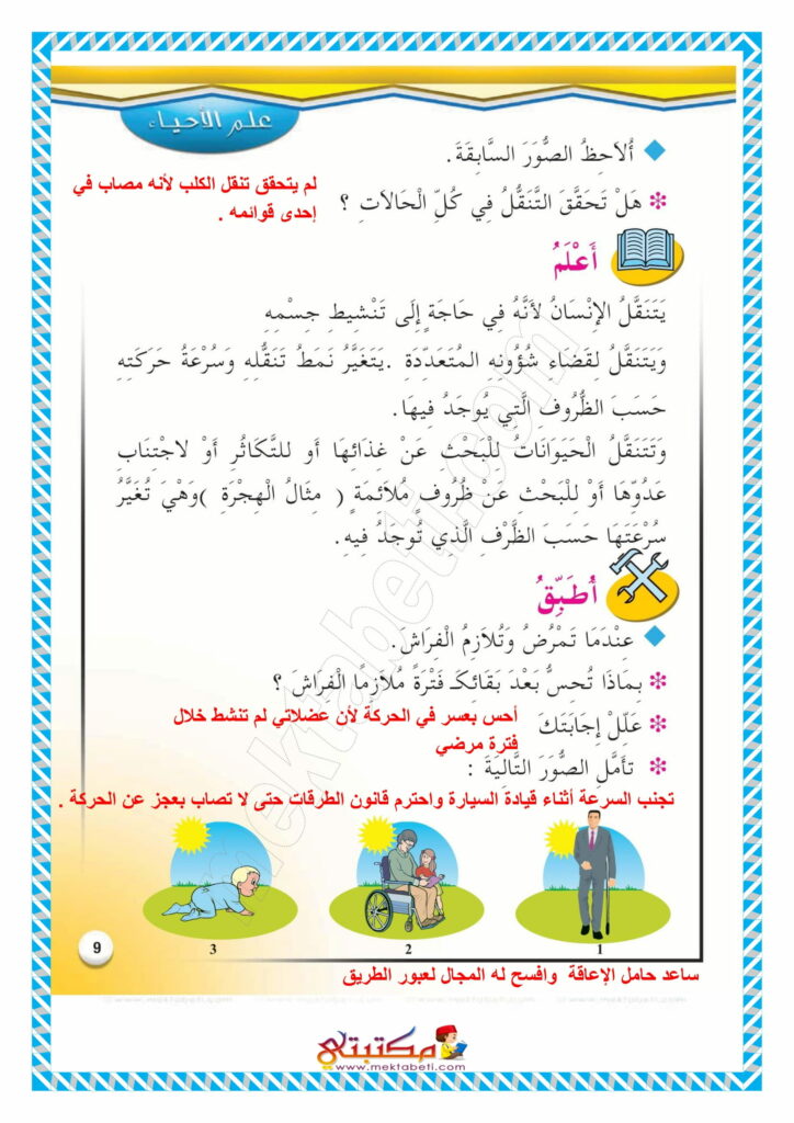 إصلاح تمارين كتاب الإيقاظ العلمي السنة الثالثة محور التنقل