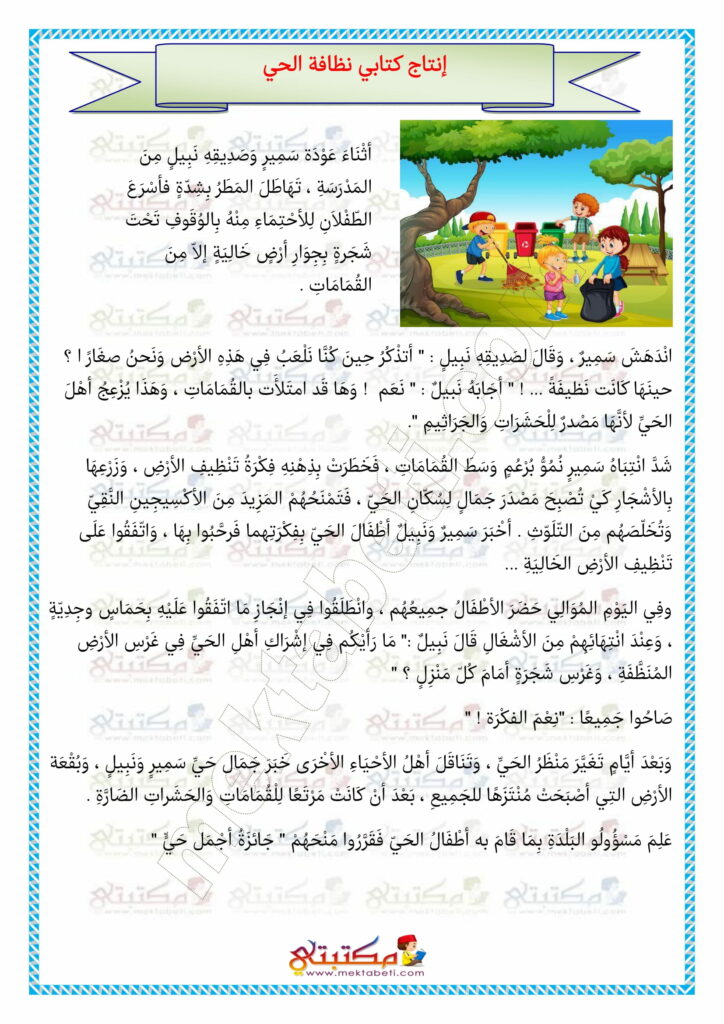 إنتاج كتابي نظافة الحي
