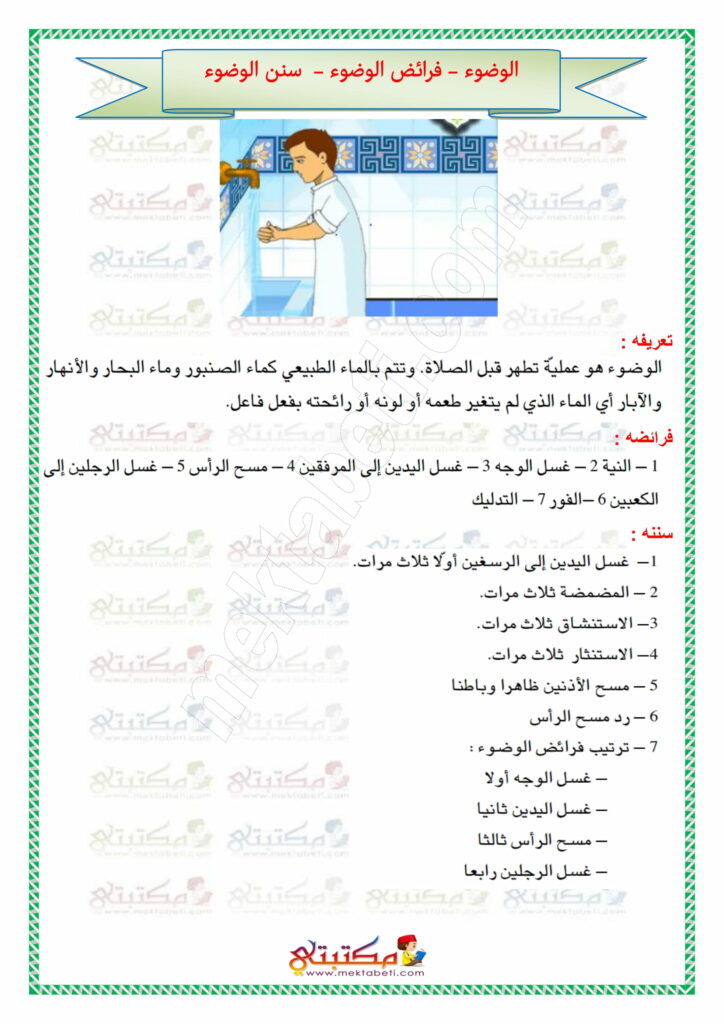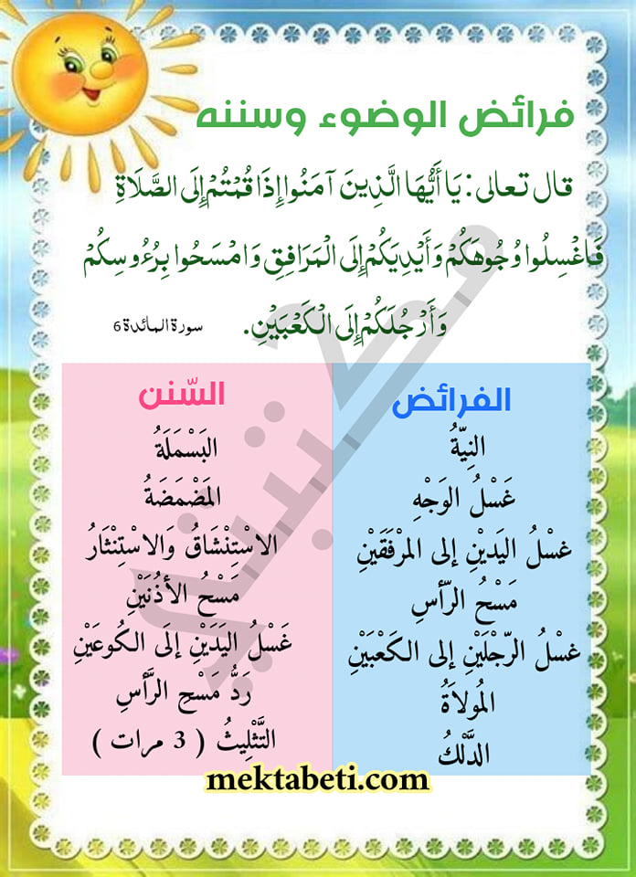 الوضوء – فرائض الوضوء – سنن الوضوء