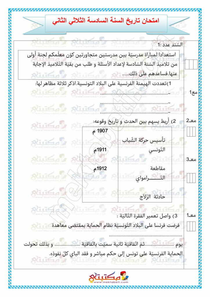 تقييم الوحدة الثالثة في مادة القراءة السنة الثانية