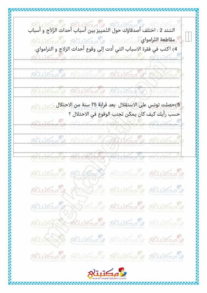 تقييم في مادة التربية المدنية السنة الخامسة الثلاثي الأول
