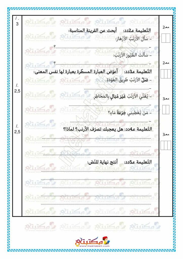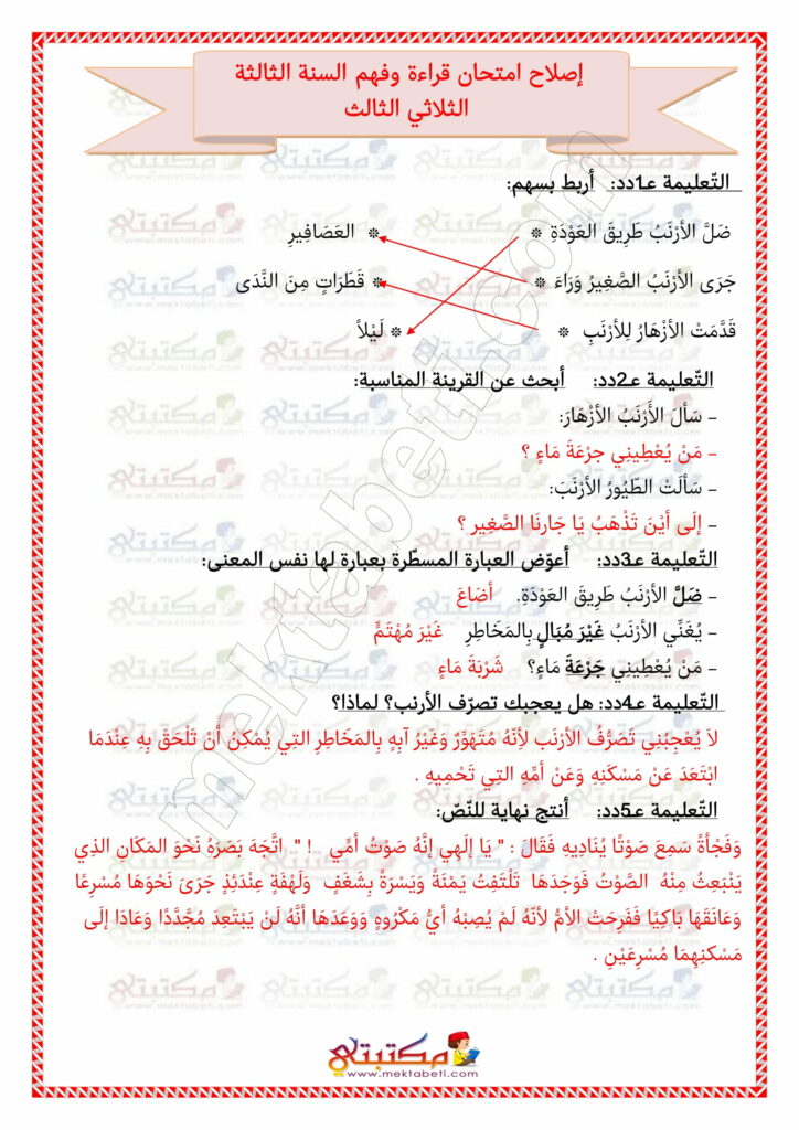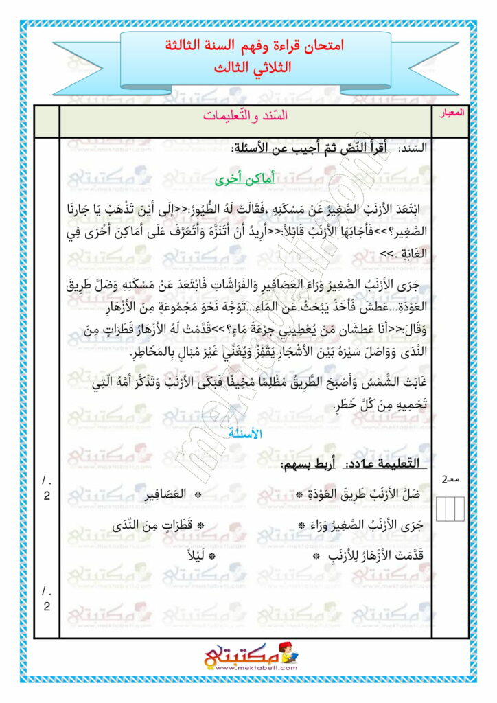 امتحان قراءة وفهم السنة الثالثة الثلاثي الثالث مع الإصلاح