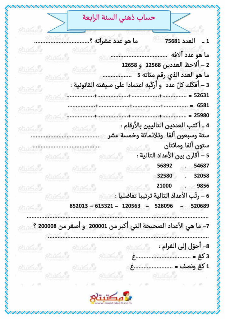 - أساسي / الثلاثي الثاني / امتحانات / رابعة إبتدائي / علوم