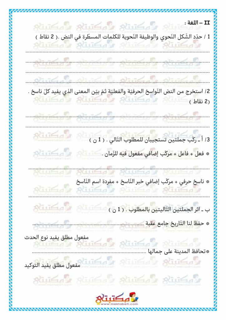 فرض تأليفي عدد 2 في دراسة النصّ السنة السابعة