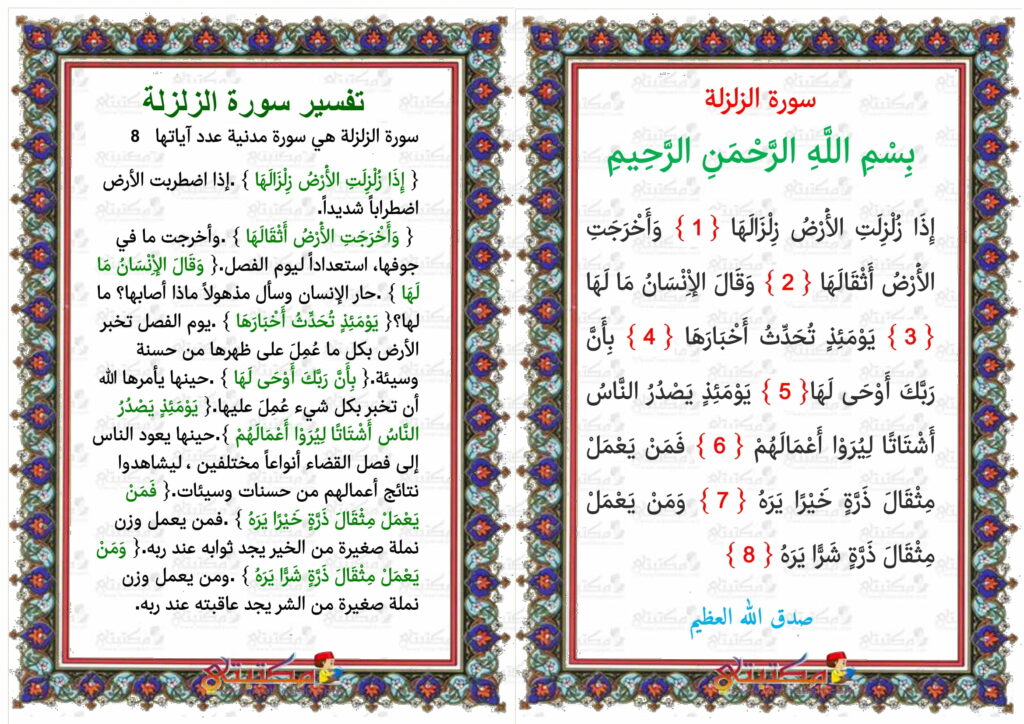 سورة الزلزلة هي سورة مدنية عدد آياتها 8