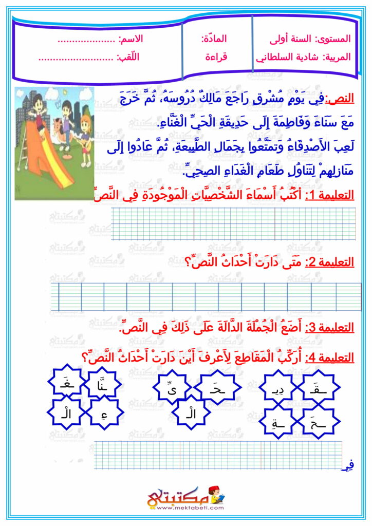 أستعد لامتحان القراءة السنة الأولى الثلاثي الأول
