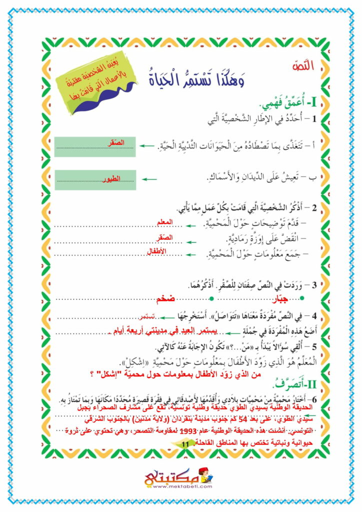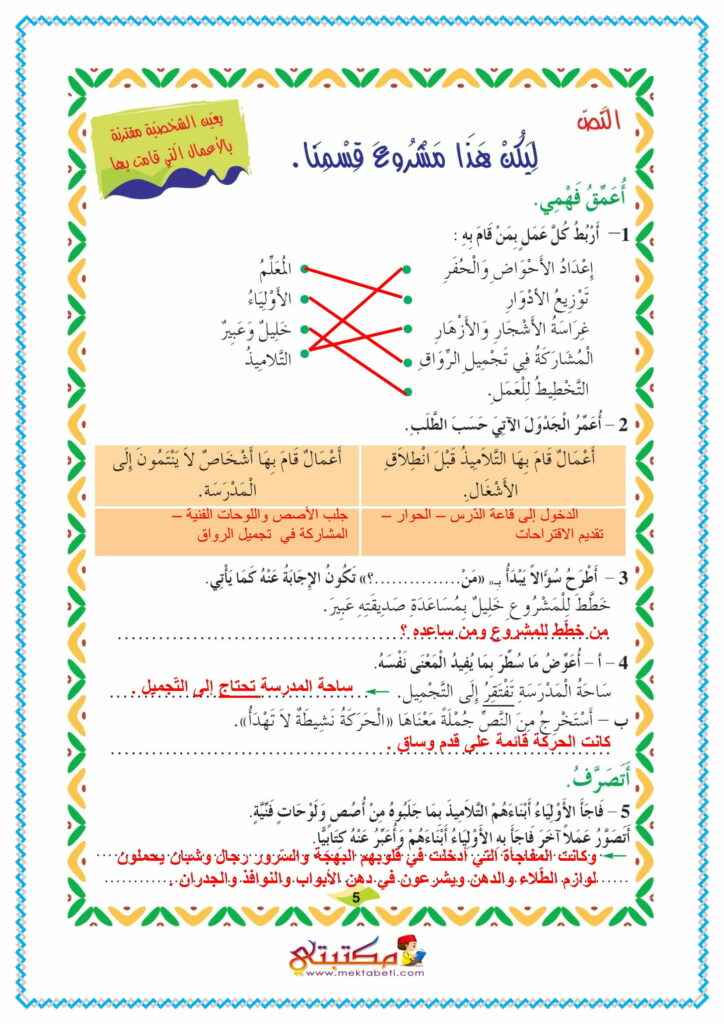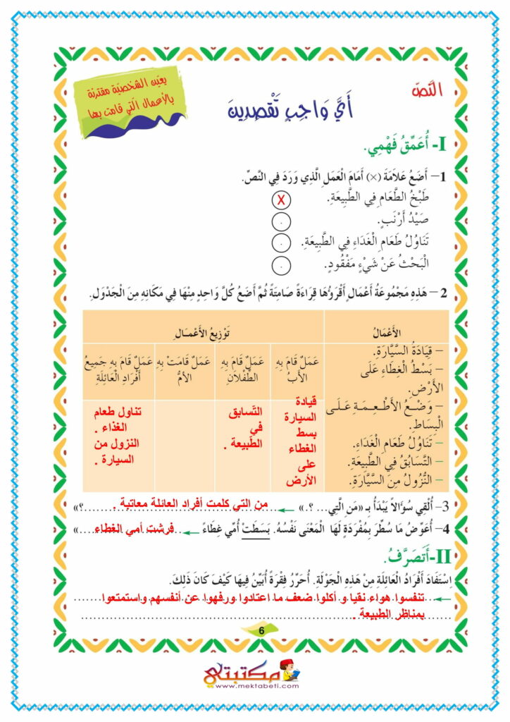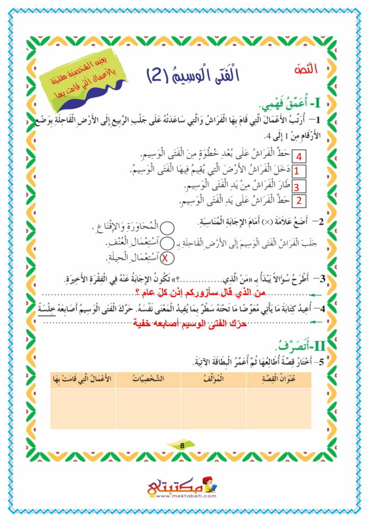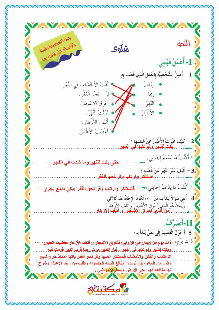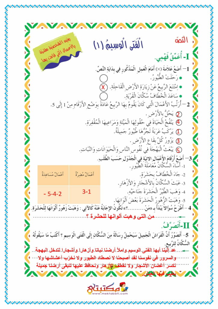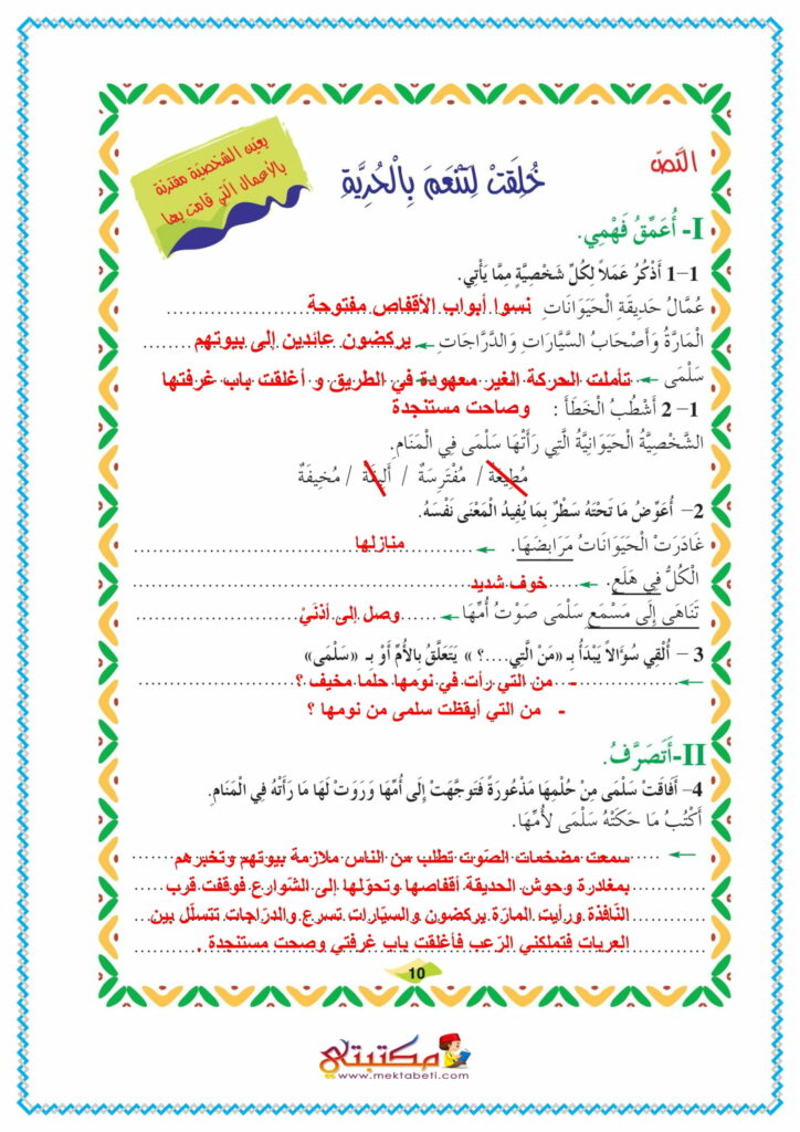 إصلاح تمارين الإنتاج الكتابي السنة الثالثة