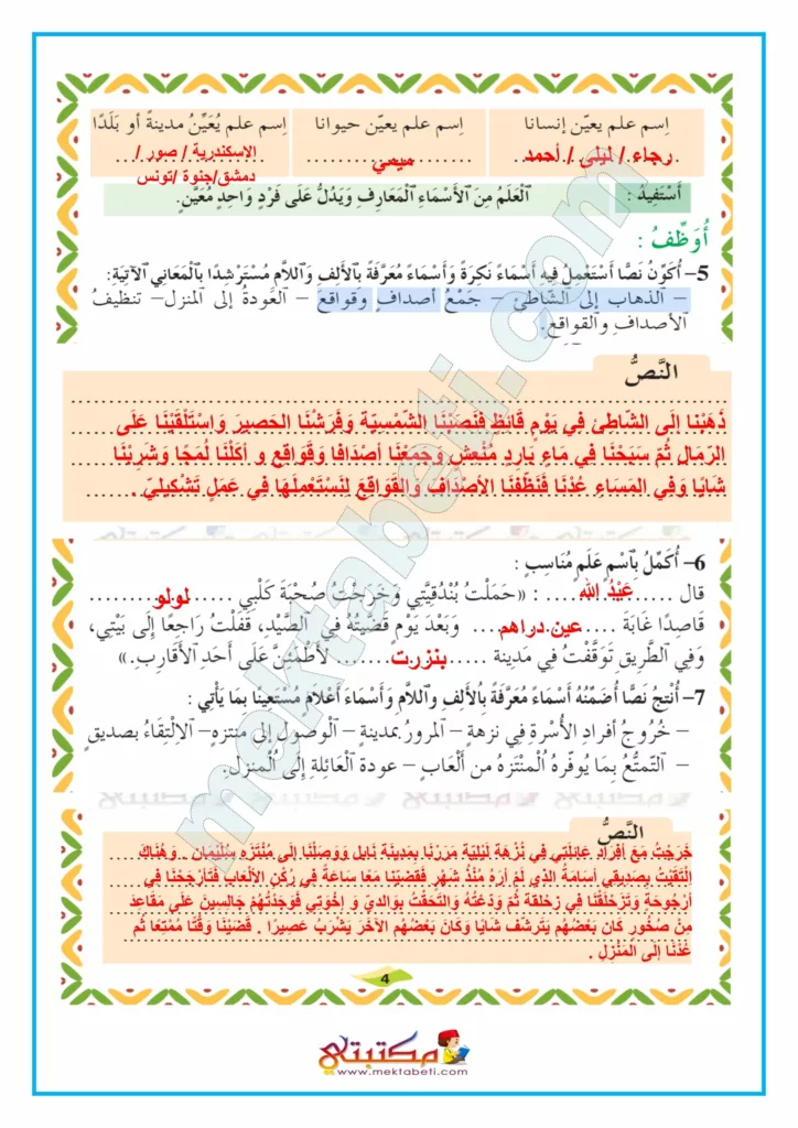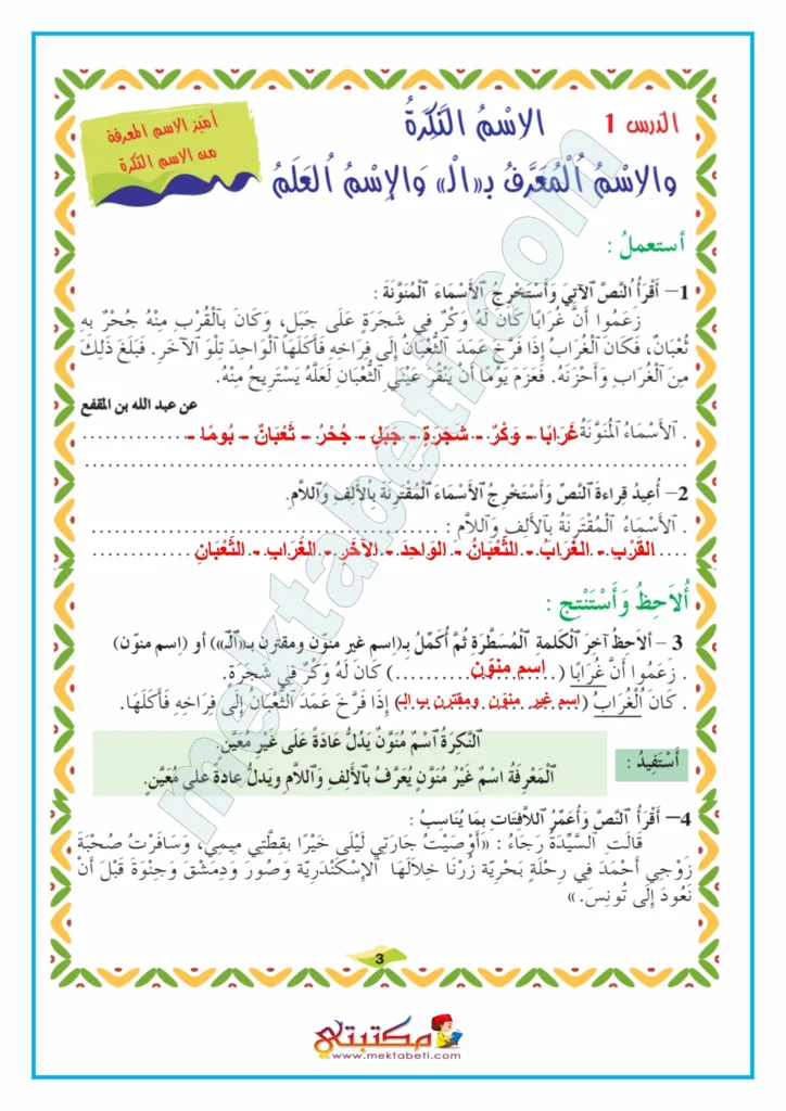 إصلاح تمارين الكتاب المدرسي قواعد اللغة السنة الخامسة صفحة 3 و 4
