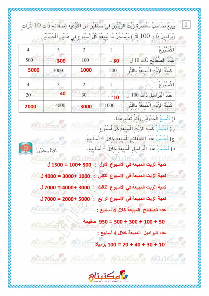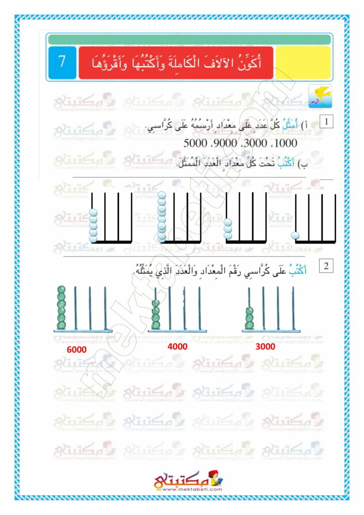 إصلاح تمارين كتاب الرياضيات السنة الثالثة الدرس 7 أكون الآلاف كاملة