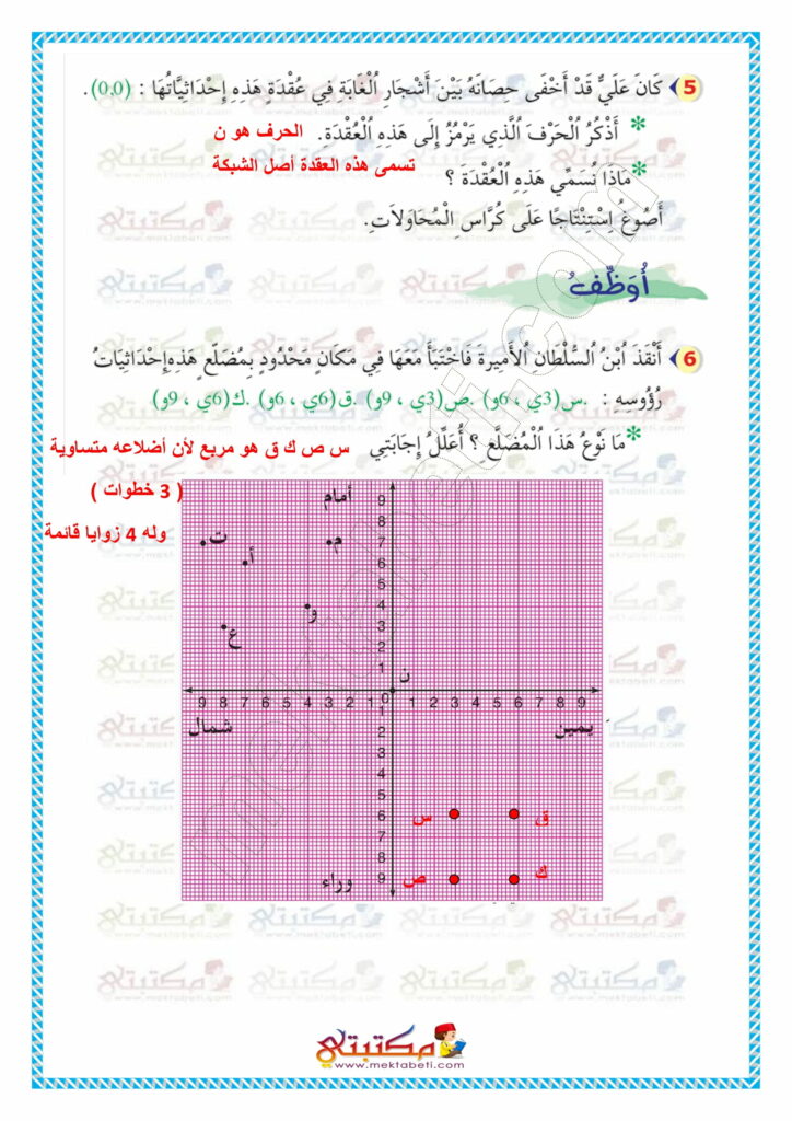 إصلاح كتاب الرياضيات السنة الخامسة الدرس الثاني أحدد إحداثيات عقدة على الشبكة من صفحة 8 إلى صفحة 10