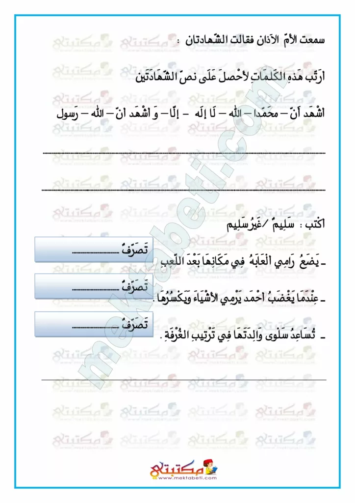 أرَتّب هَذهِ الكَلمَاتِ لأحْصلَ عَلَى نصّ الشّهَادَتَين