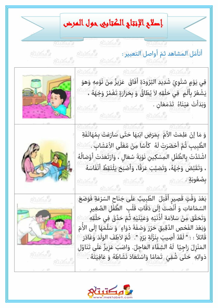 وَ مَا إنْ عَلِمَتْ الأمّ بِمَرَضِ ابْنِهَا حَتّى سَارَعَتْ بِمُهَاتَفَةِ الطَّبِيبِ ثُمَّ أحْضَرَتْ لَهُ كَأسًا مِنْ مُغَلّى الأعْشَابِ. اشْتَدَّتْ بِالطِّفْلِ المِسْكِينِ نَوْبَةَ سُعَالٍ ، وَارْتَعَدَتْ أوْصَالُهُ ، وَتَقَبَّضَ وَجْهُهُ، وَتَصَبَّبَ عَرَقًا، وَأصْبَحَ يَلْتَقِطُ أنْفَاسَهُ بِصُعُوبَةٍ