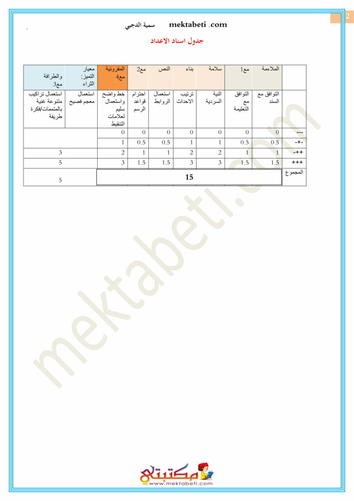 اختبار الثلاثي الثاني في مادة الإنتاج الكتابي السنة الرابعة