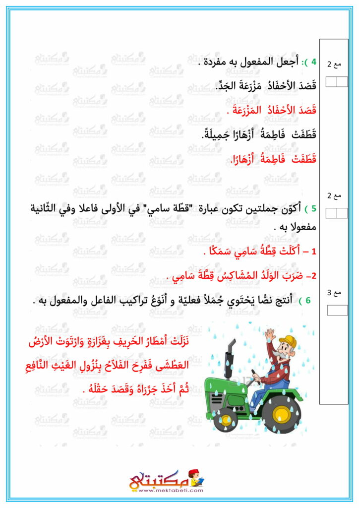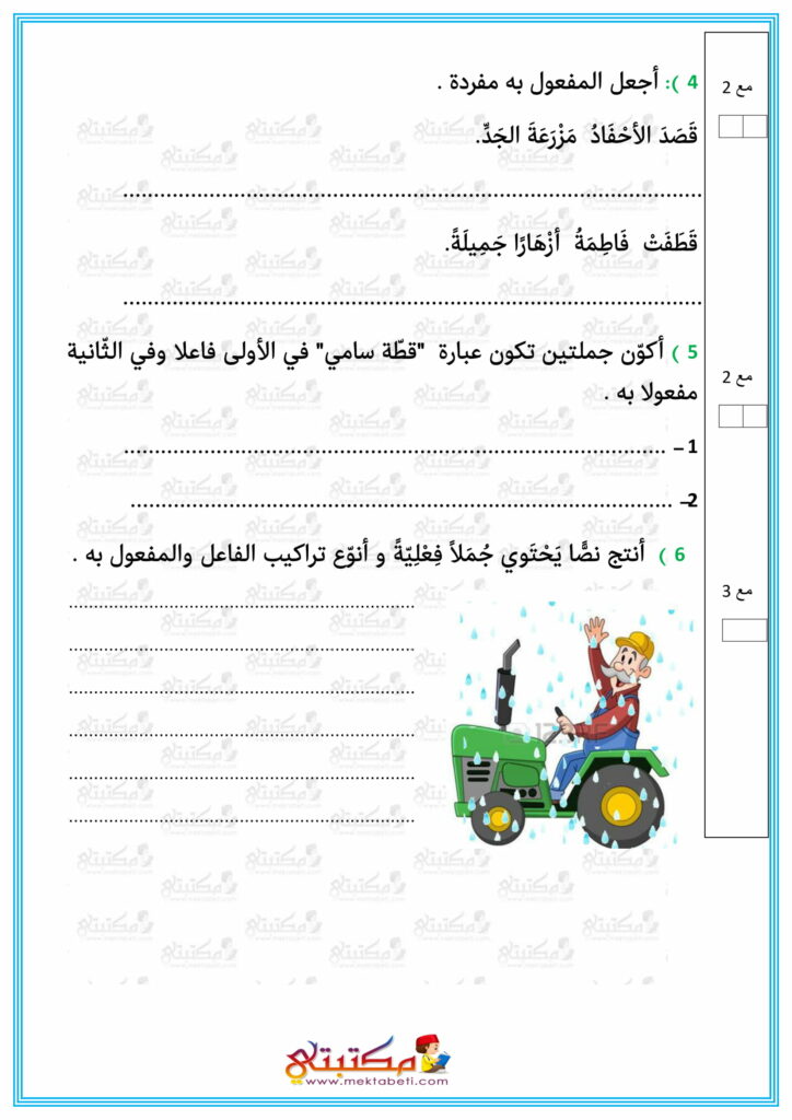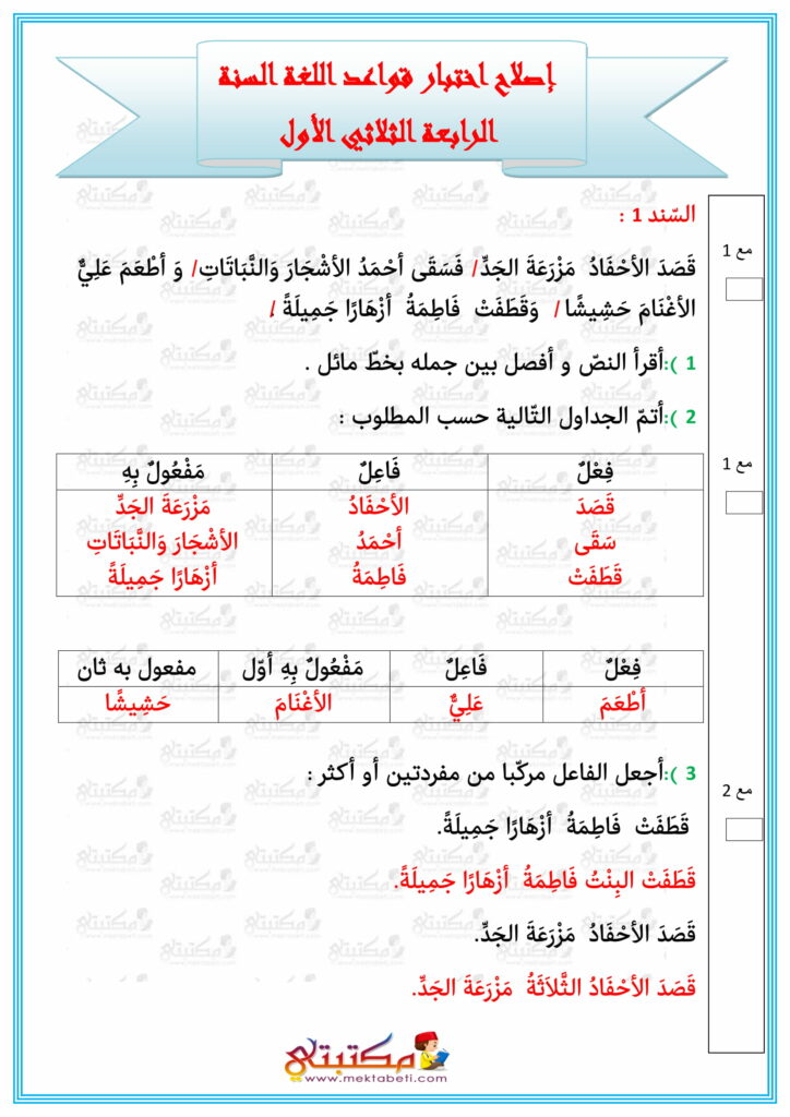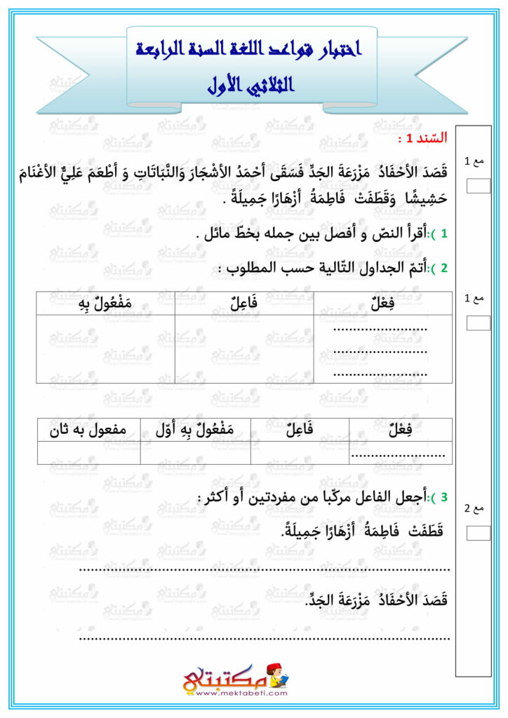 اختبار قواعد اللغة السنة الرابعة الثلاثي الأول مع الإصلاح
