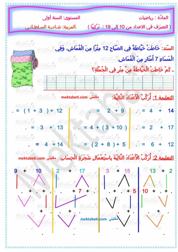 الأعداد من 10 إلى 19 قراءة وكتابة وتمثيلا مقارنة وترتيبا وتفكيكا وتركيبا
