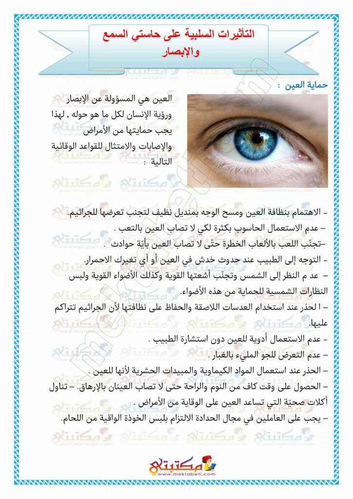 – عدم الاستعمال الحاسوب بكثرة لكي لا تصاب العين بالتعب .