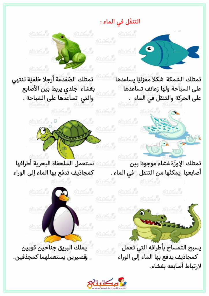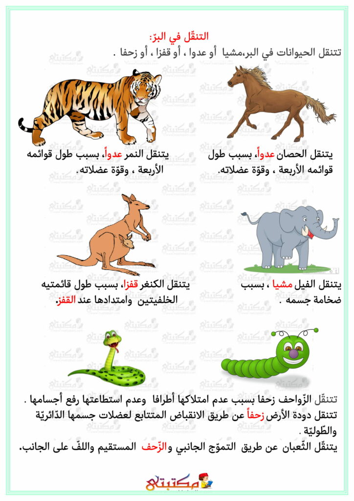تختلف طريقة التنقّل من حيوان إلى آخر باختلاف البيئة التي يعيش فيها ، فهناك حيوانات تتحرك على اليابسة ، وأخرى في الهواء، وأخرى في الماء .