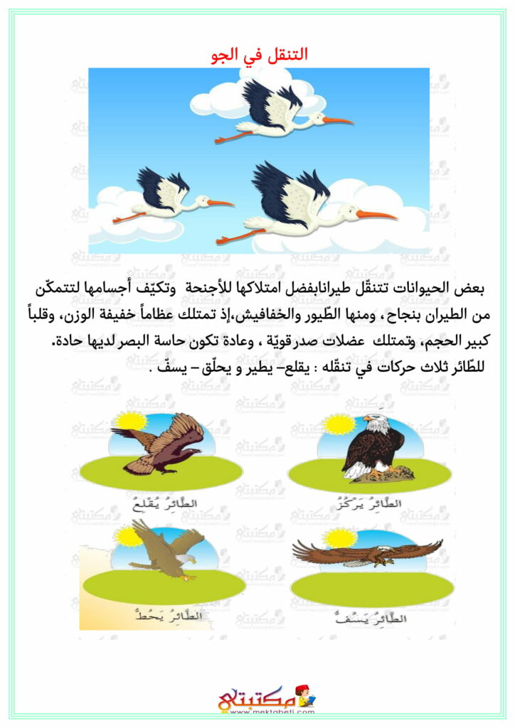 و تتنقّل مشيا أو عدوا أو قفزا أو طيرانا أو سباحة .