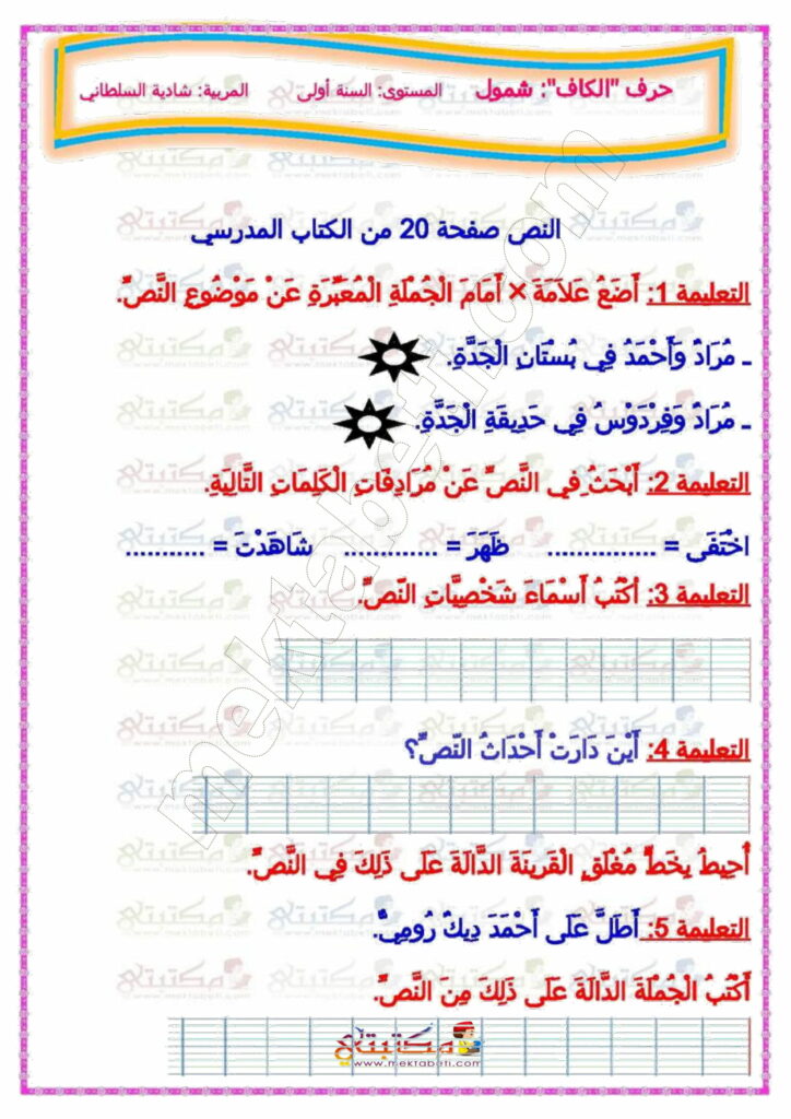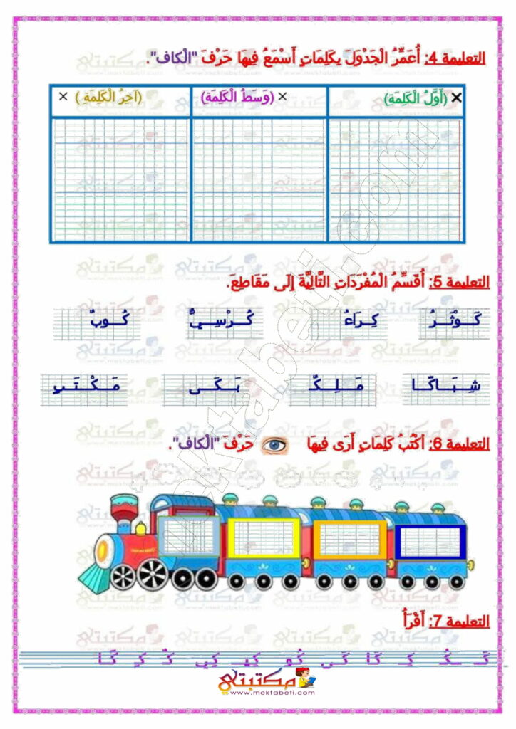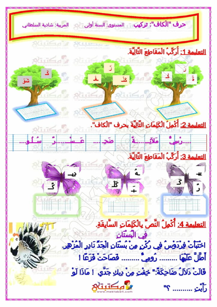 السنة الأولى حرف الكاف شمول وتحليل وتركيب