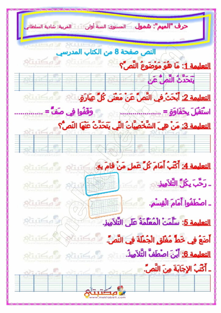 امتحان إنتاج كتابي السنة الثانية الثلاثي الثالث مع الإصلاح