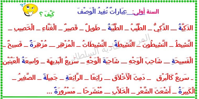 السنة الأولى عبارات لإثراء الإنتاج الكتابي والتواصل الشفوي