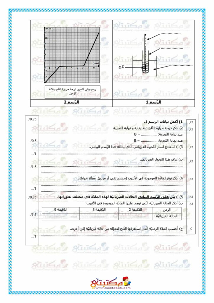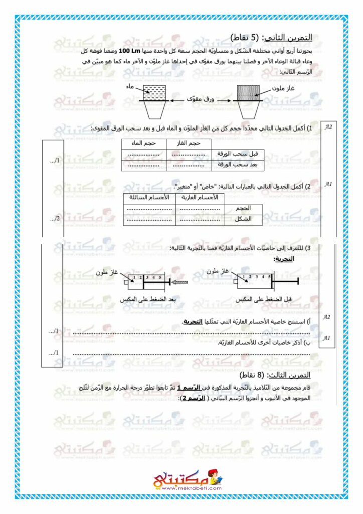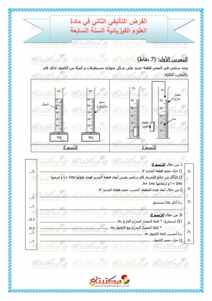 الفرض التأليفي الثاني في مادة العلوم الفيزيائية السنة السابعة