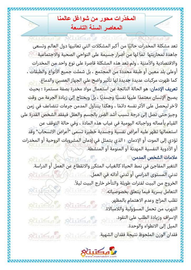 المخدرات محور من شواغل عالمنا المعاصر السنة التاسعة