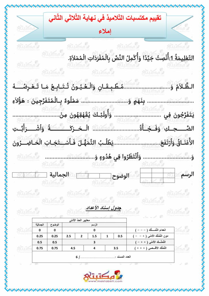 امتحان إملاء السنة الرابعة الثلاثي الثاني