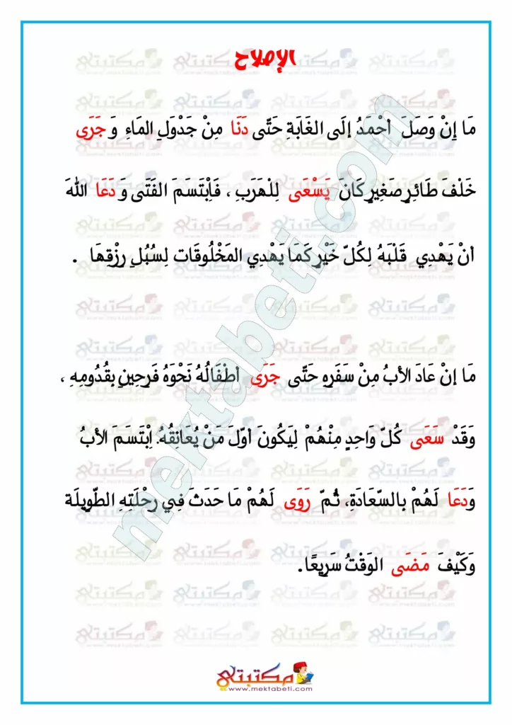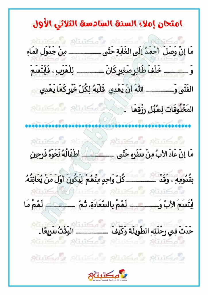 امتحان إملاء السنة السادسة الثلاثي الأول