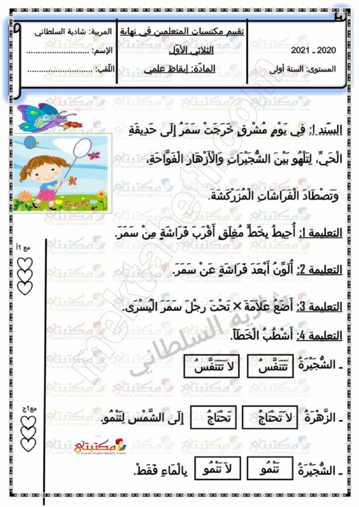 امتحان إيقاظ علمي السنة الأولى الثلاثي الأول