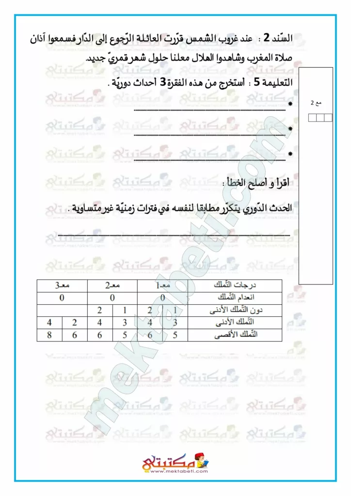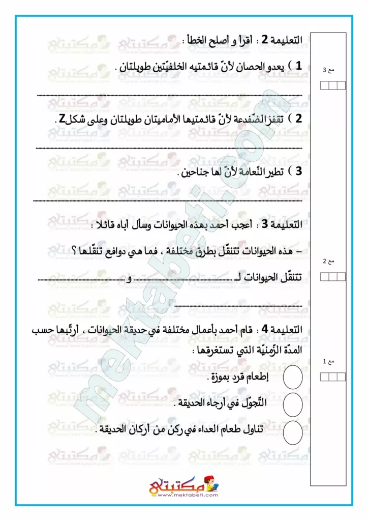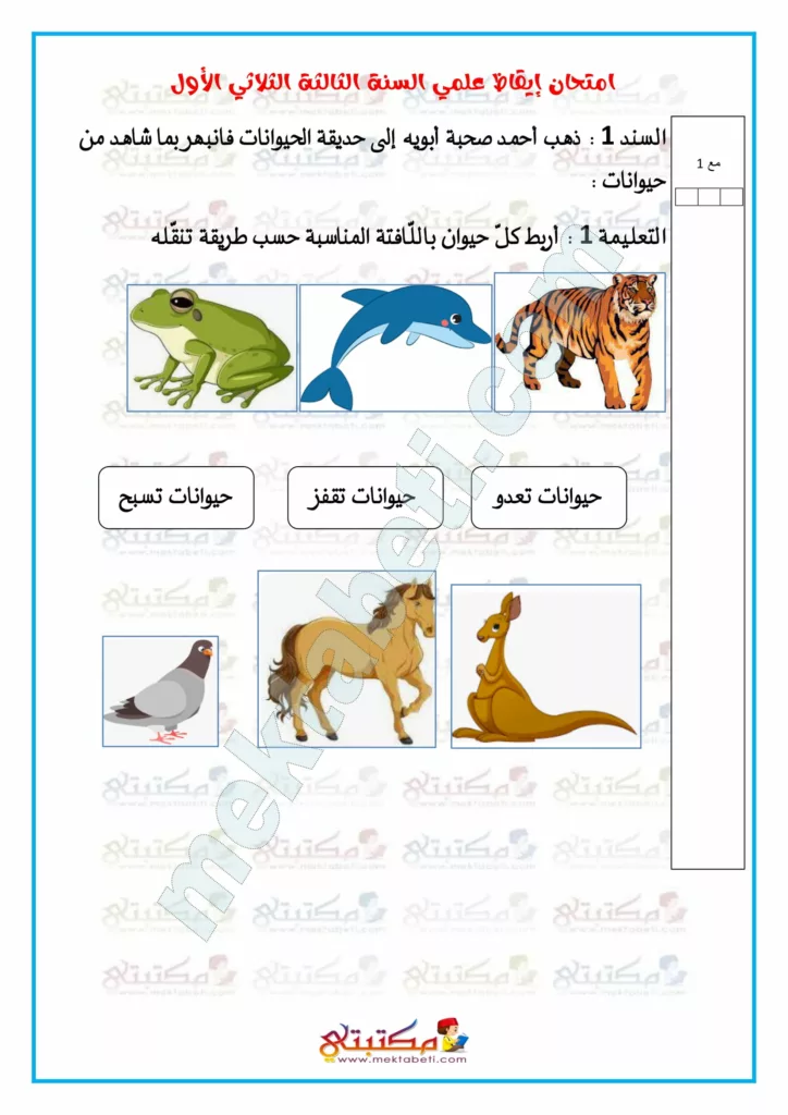 امتحان إيقاظ علمي السنة الثالثة الثلاثي الأول