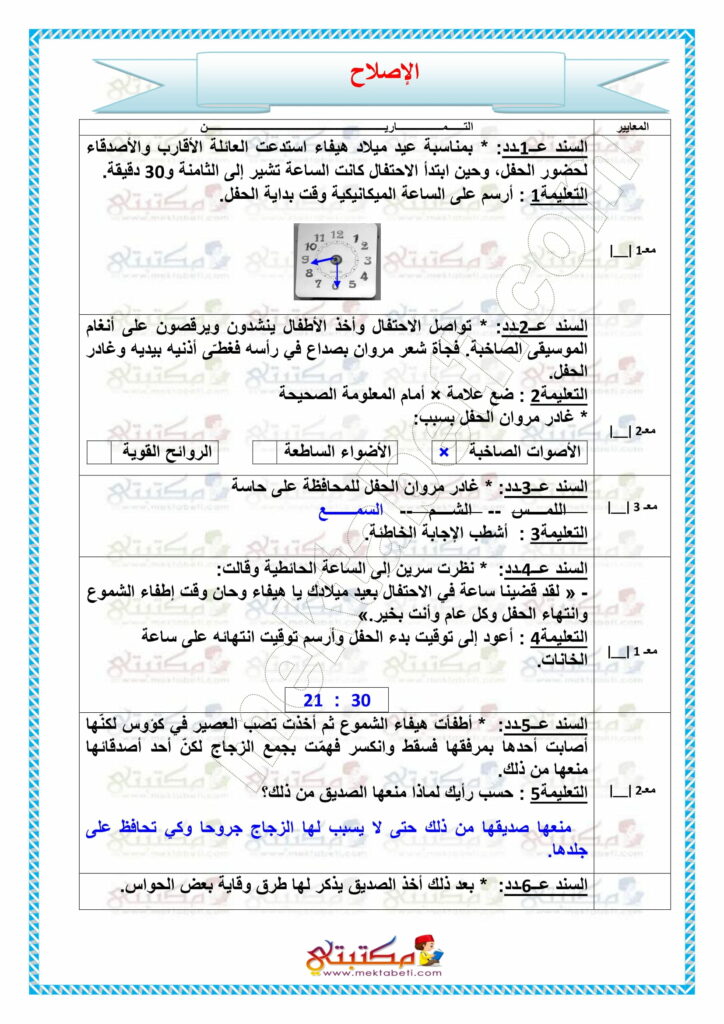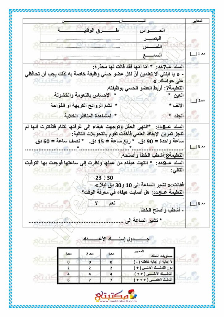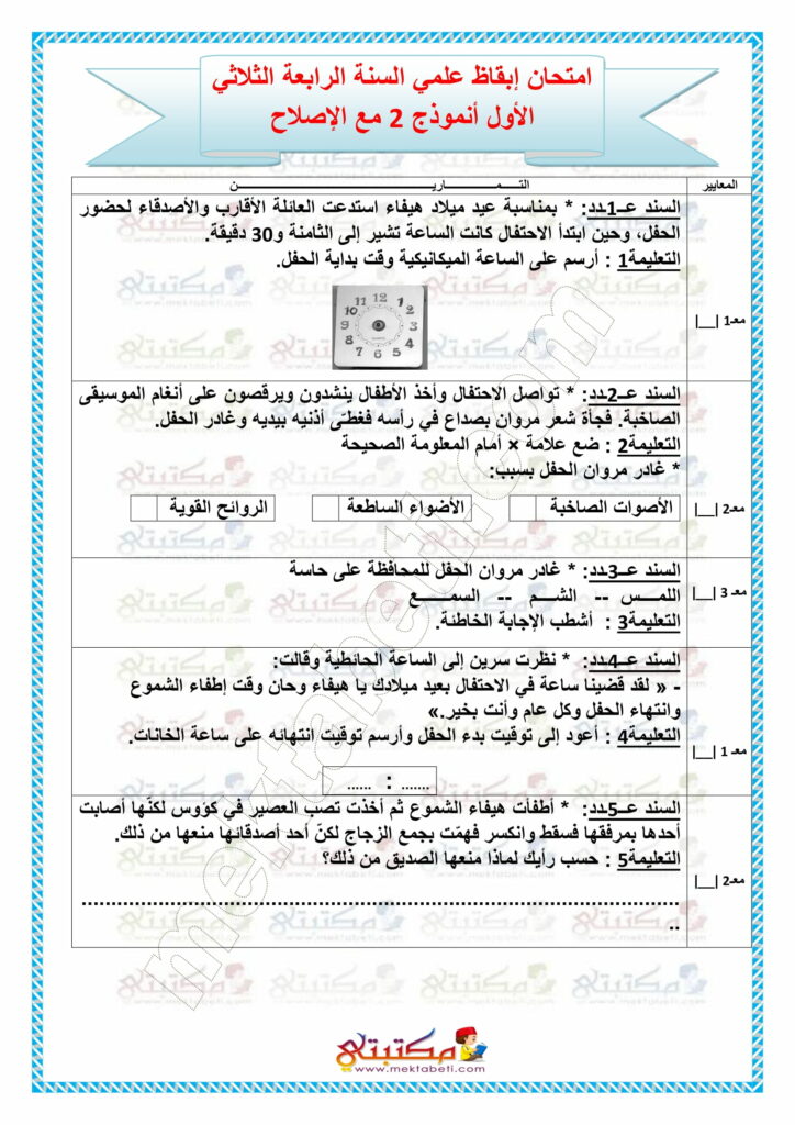 امتحان إيقاظ علمي السنة الرابعة الثلاثي الأول مع الإصلاح أنموذج 2