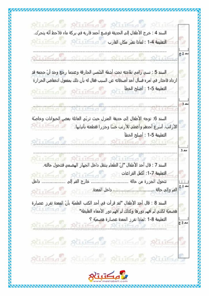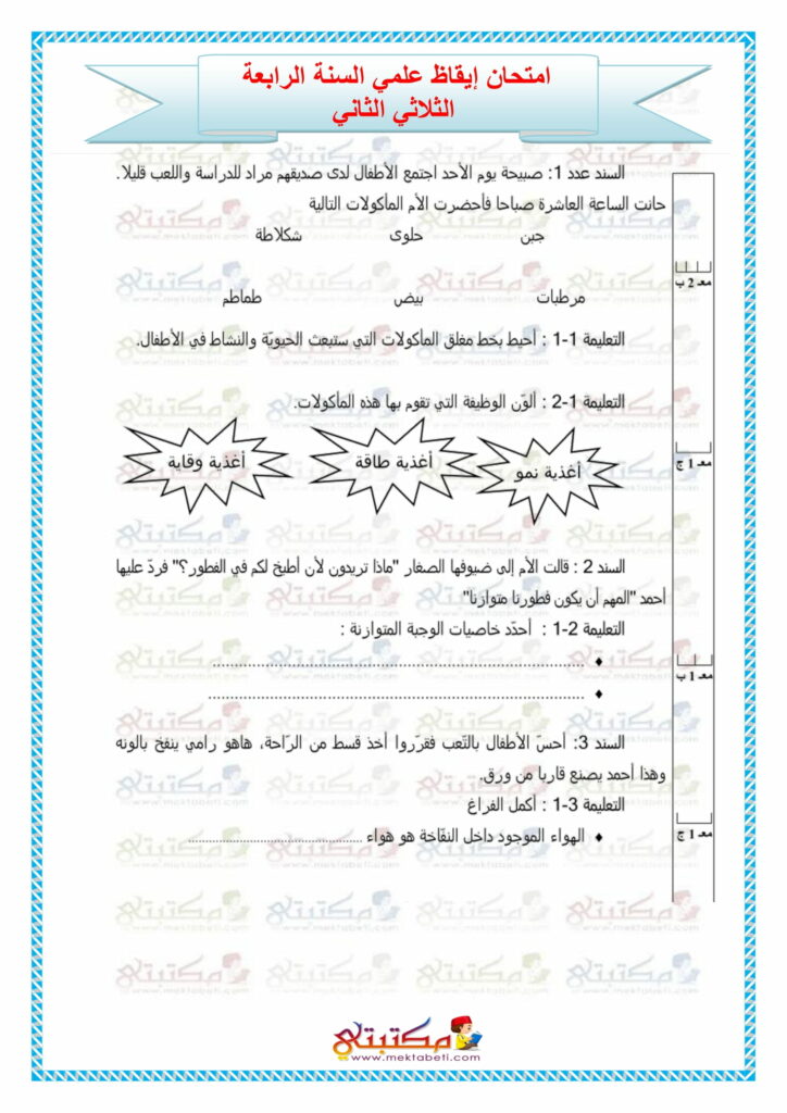 امتحان إيقاظ علمي السنة الرابعة الثلاثي الثاني
