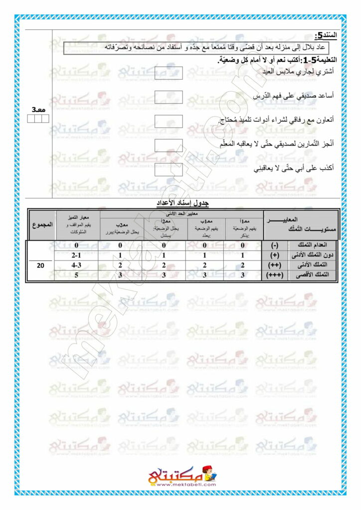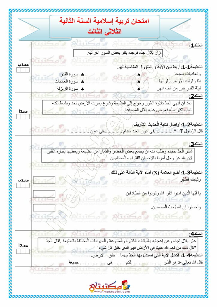 امتحان تربية إسلامية السنة الثانية الثلاثي الثالث