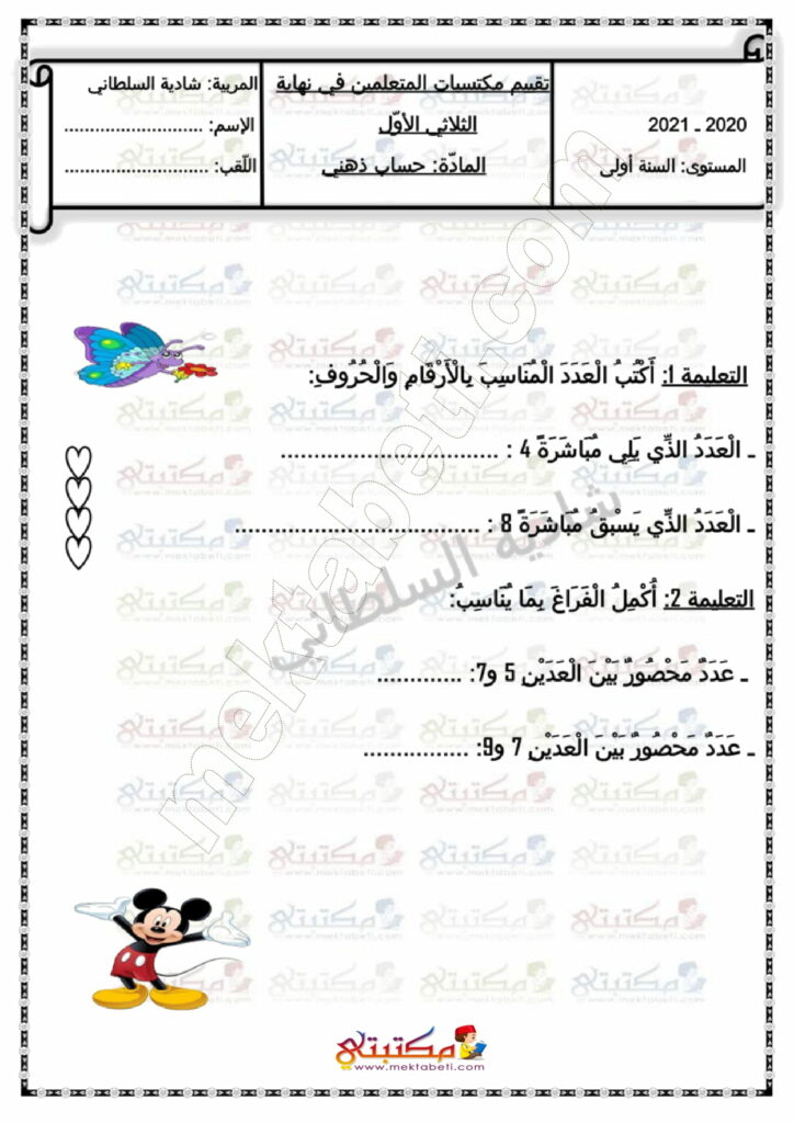 امتحان حساب ذهني السنة الأولى الثلاثي الأول