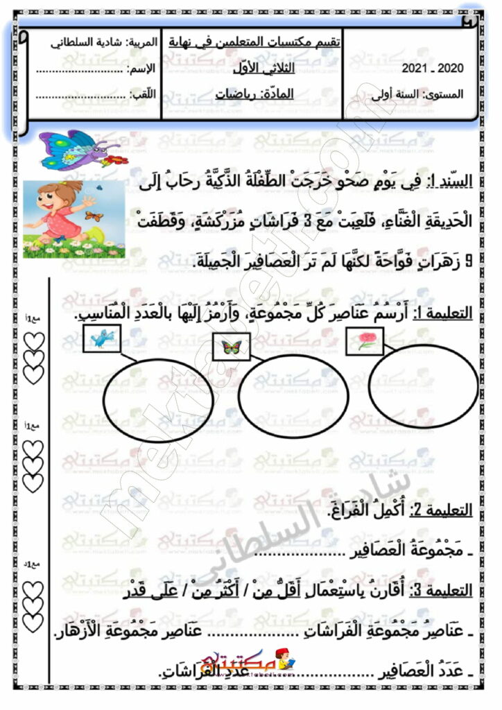 امتحان رياضيات السنة الأولى الثلاثي الأول