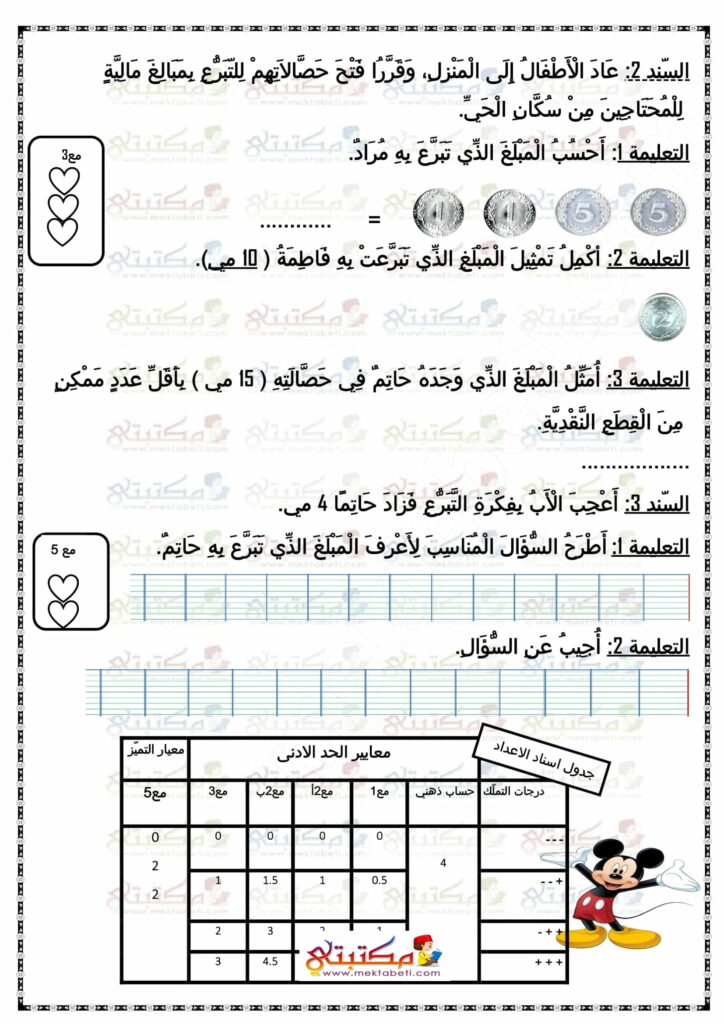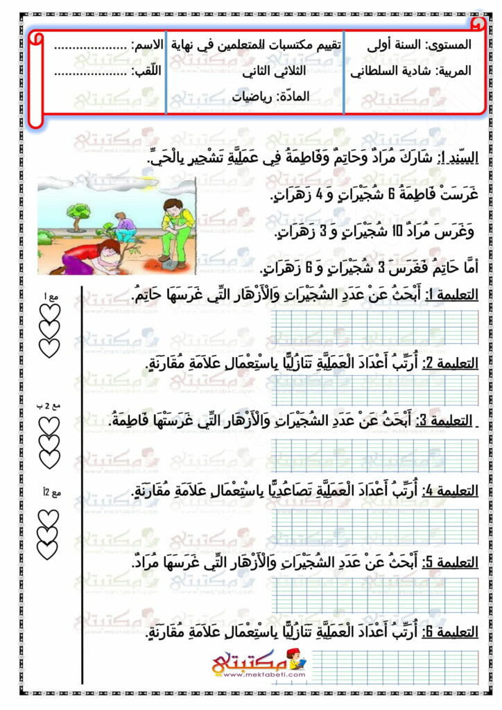 امتحان رياضيات السنة الأولى الثلاثي الثاني