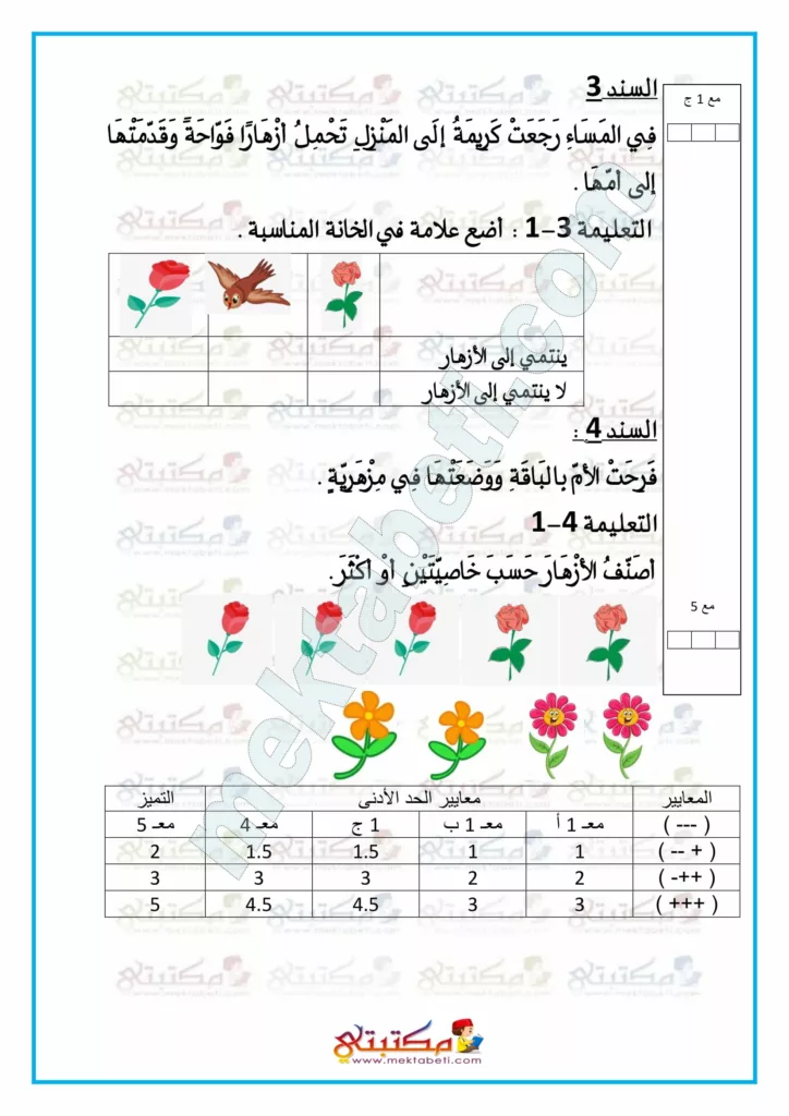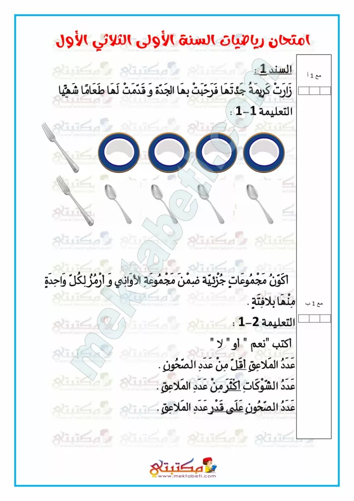جميع اختبارات السنة الأولى الثلاثي الأول بعد التخفيف