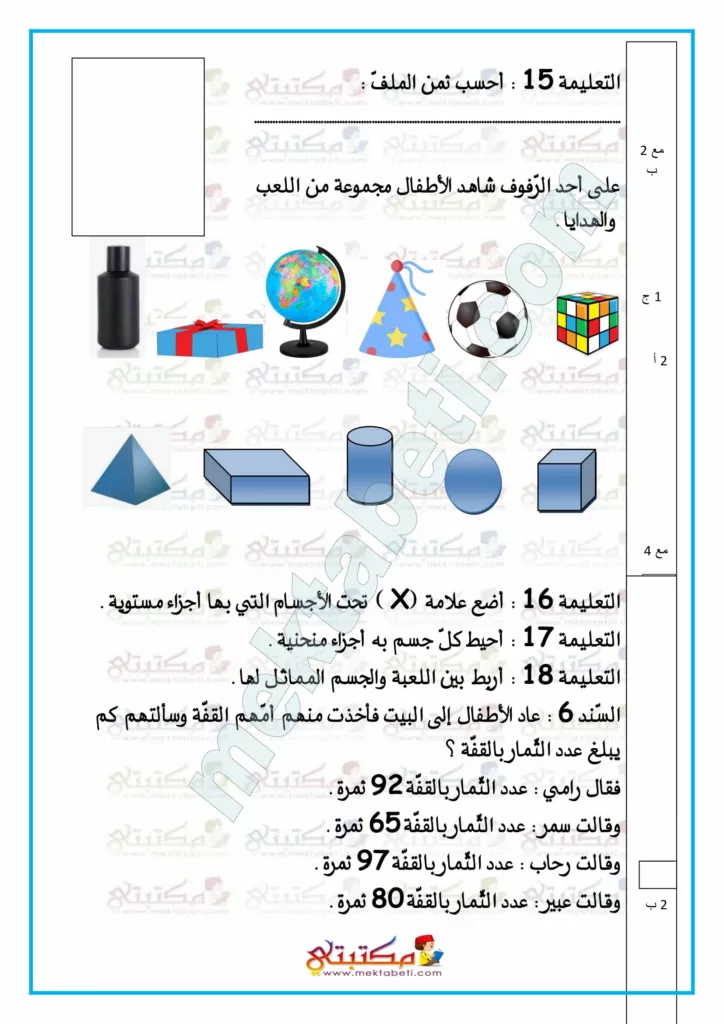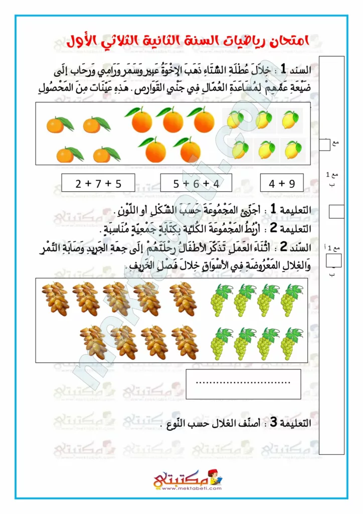 - أساسي / الثلاثي الأول / امتحانات / ثانية ابتدائي / علوم