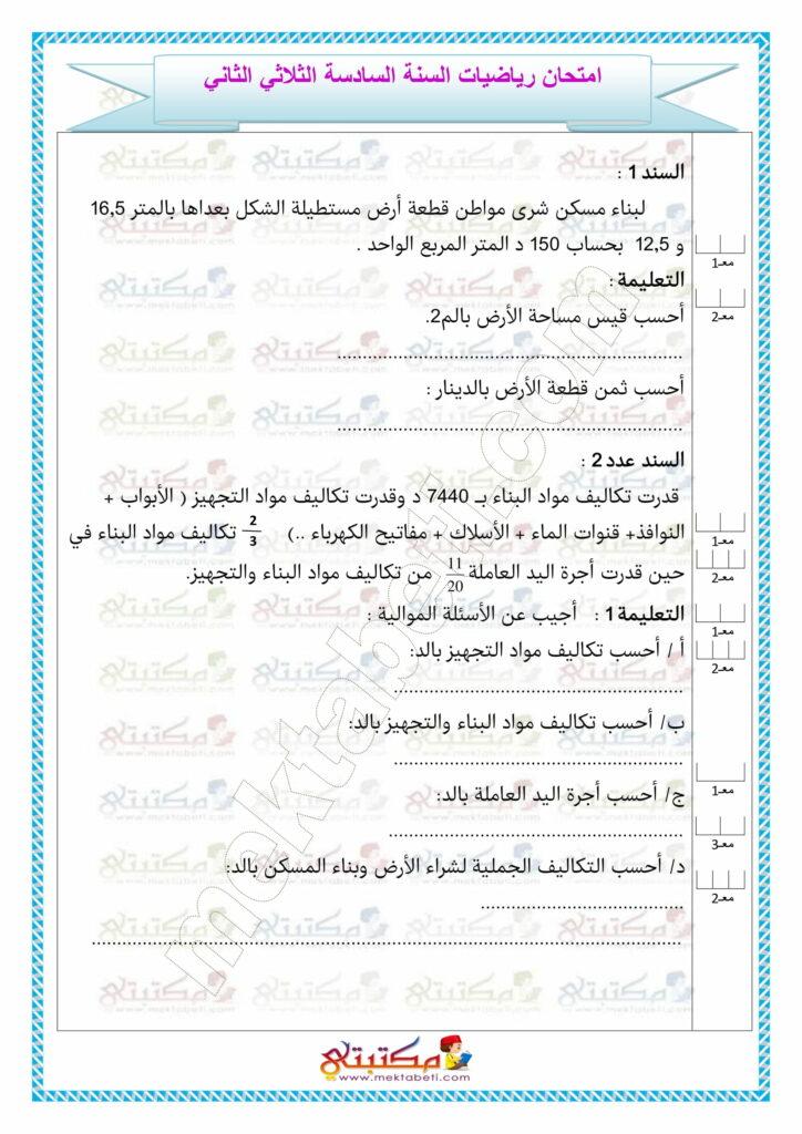 - أساسي / الثلاثي الثاني / امتحانات / سادسة إبتدائي / علوم