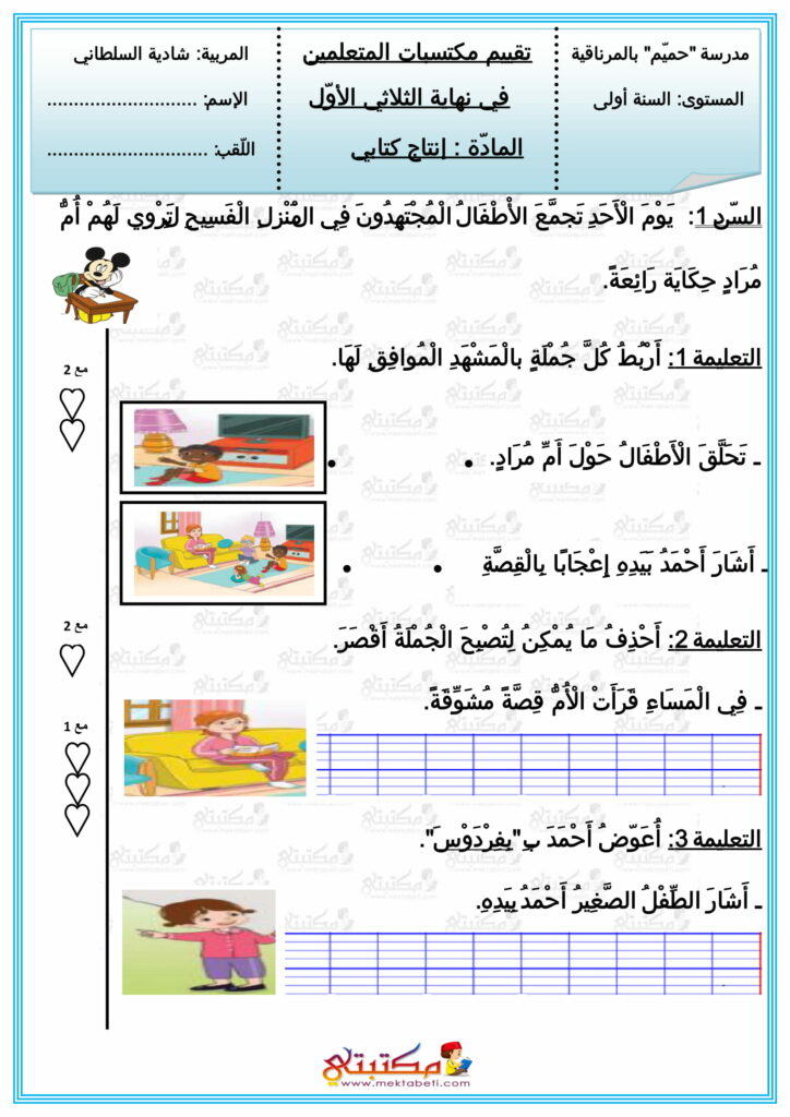 امتحان في مادة الإنتاج الكتابي السنة الأولى الثلاثي الأول