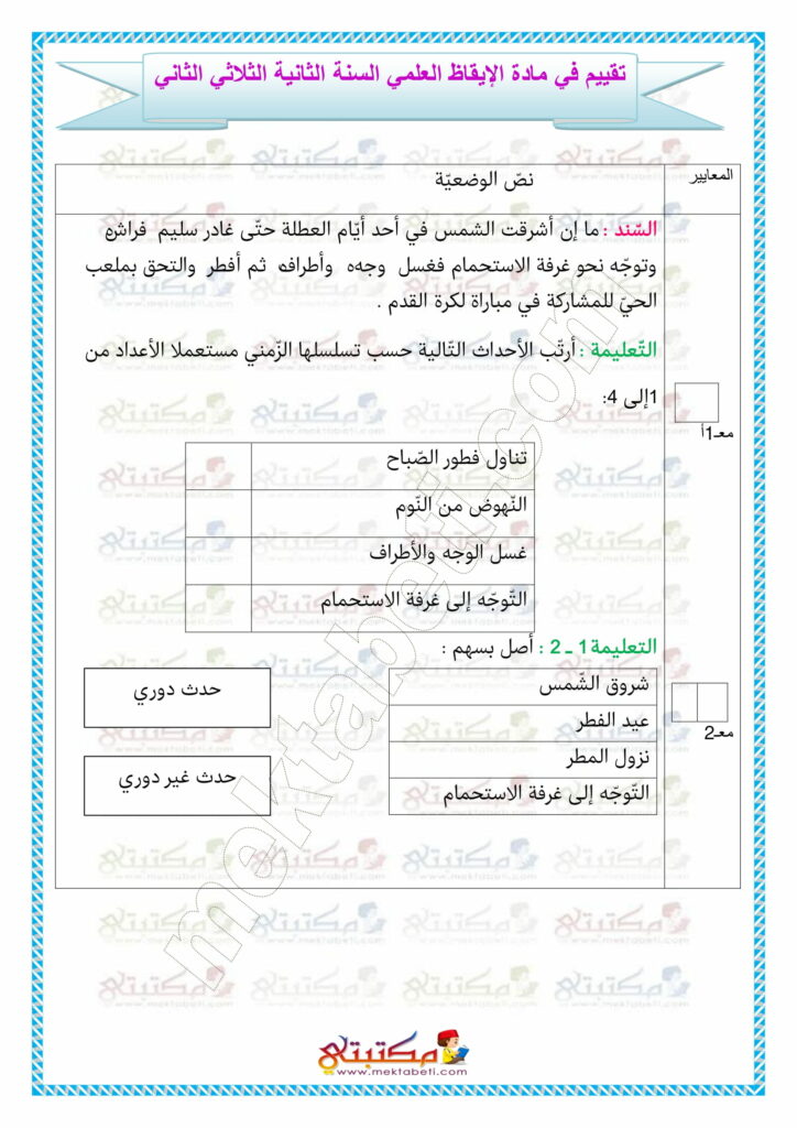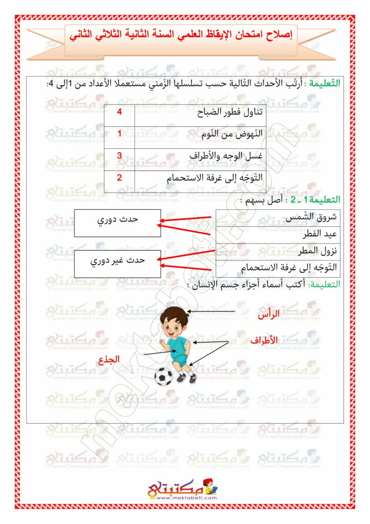 امتحان في مادة الإيقاظ العلمي السنة الثانية الثلاثي الثاني مع الإصلاح