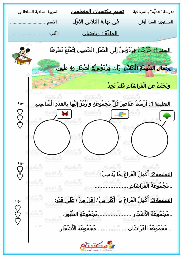 امتحان في مادة الرياضيات السنة الأولى الثلاثي الأول