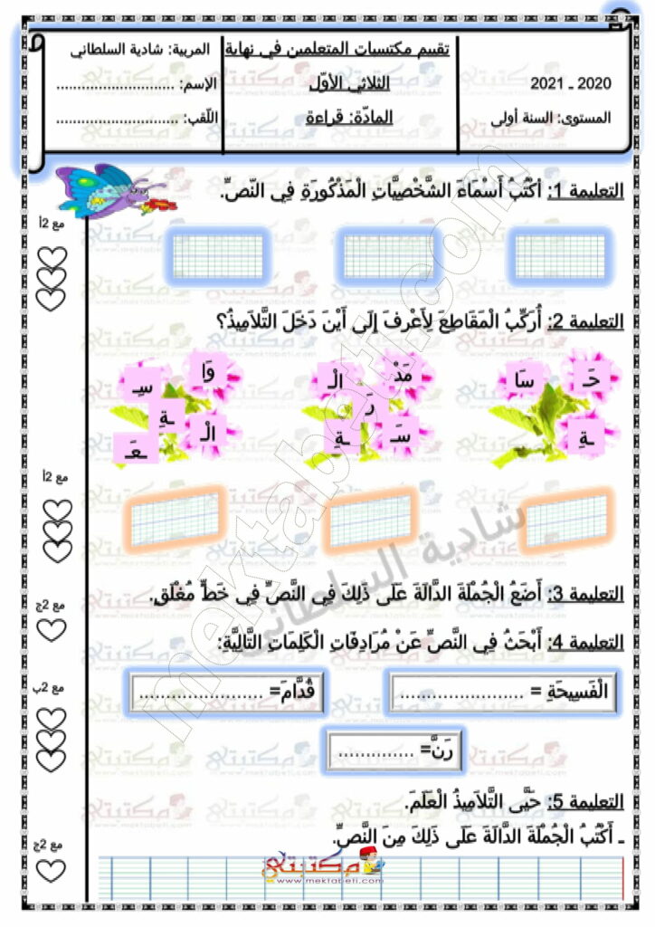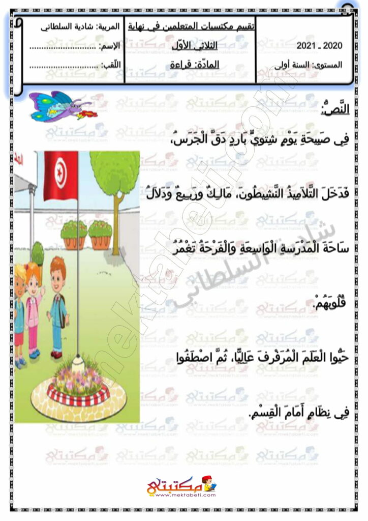 امتحان في مادة القراءة السنة الأولى الثلاثي الأول