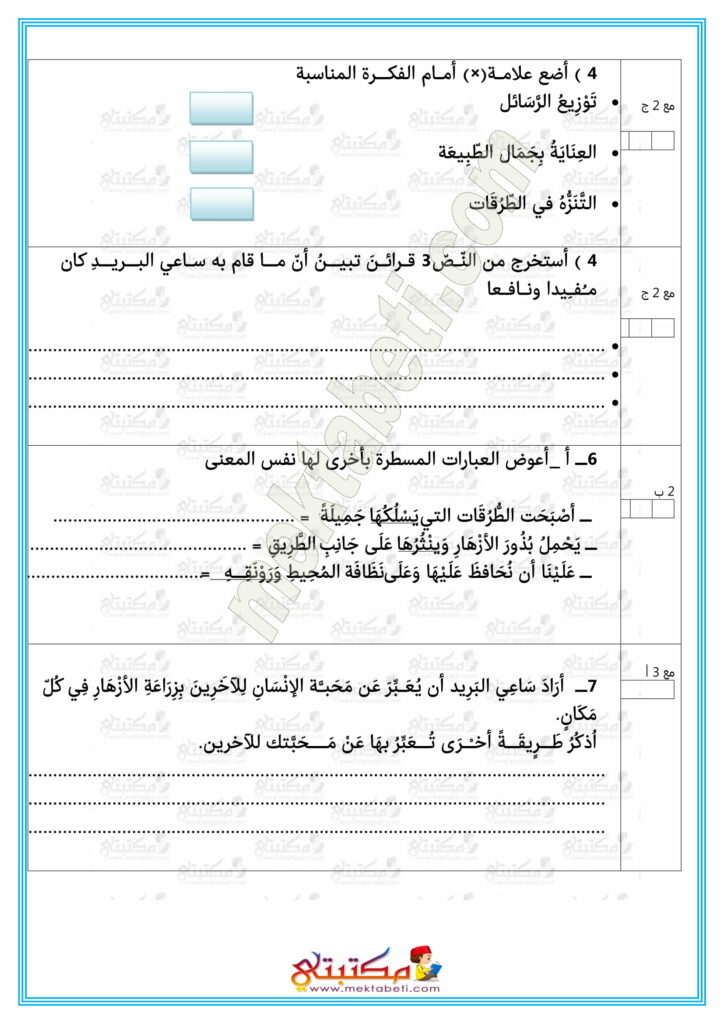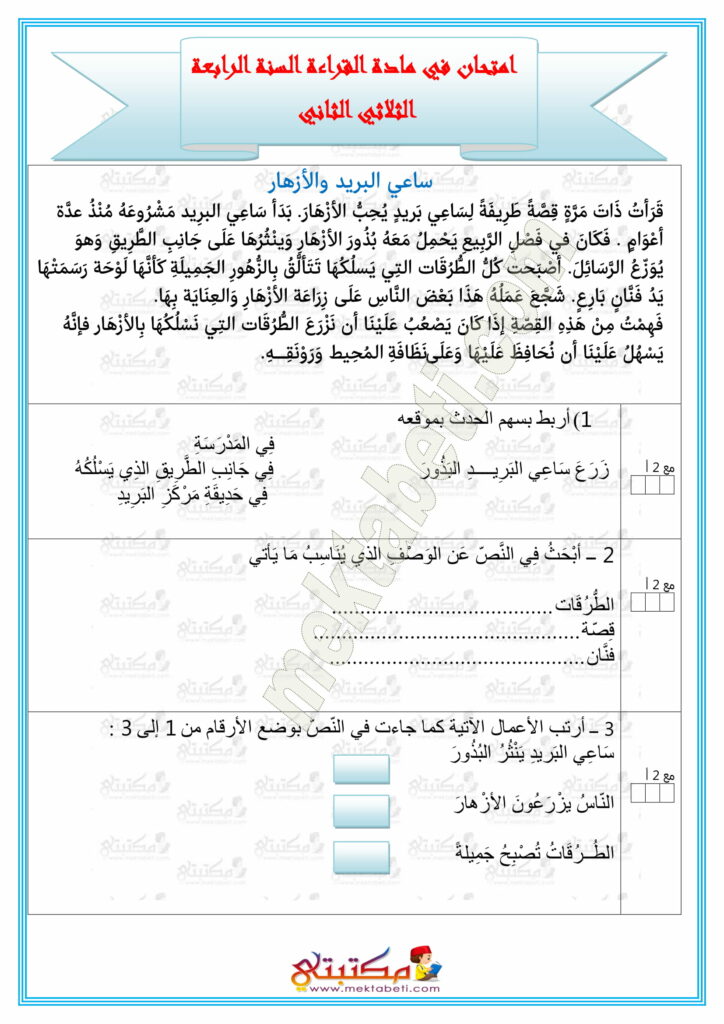 - أساسي / الثلاثي الثاني / امتحانات / رابعة إبتدائي / عربية