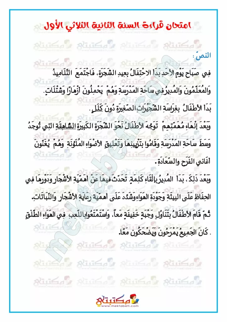 امتحان قراءة السنة الثانية الثلاثي الأول