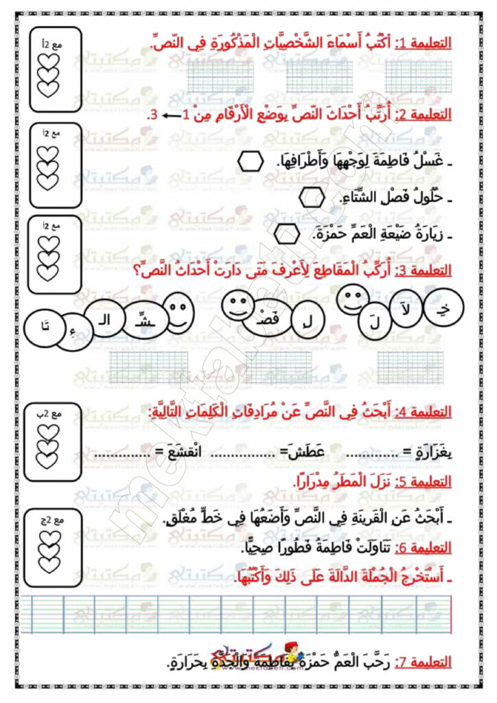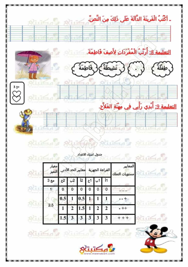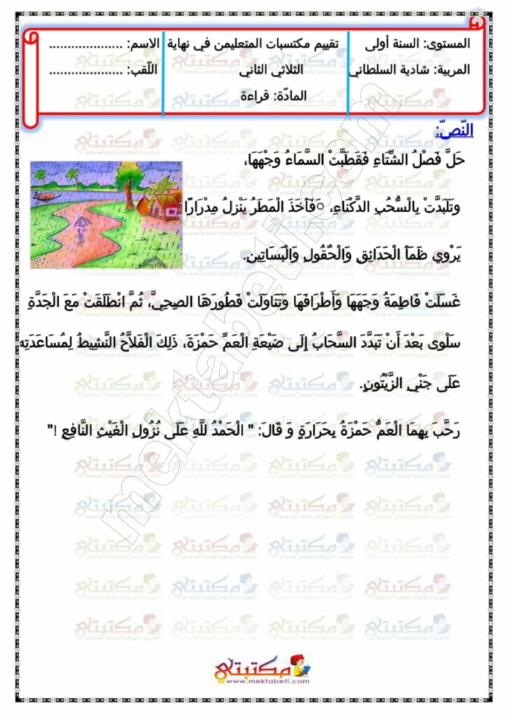 امتحان قراءة وفهم السنة الأولى الثلاثي الثاني