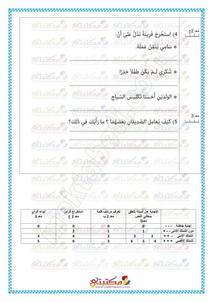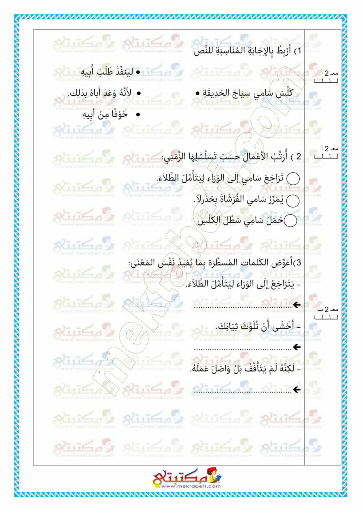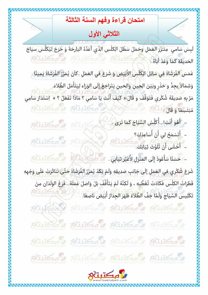 امتحان قراءة وفهم السنة الثالثة الثلاثي الأول أنموذج 2