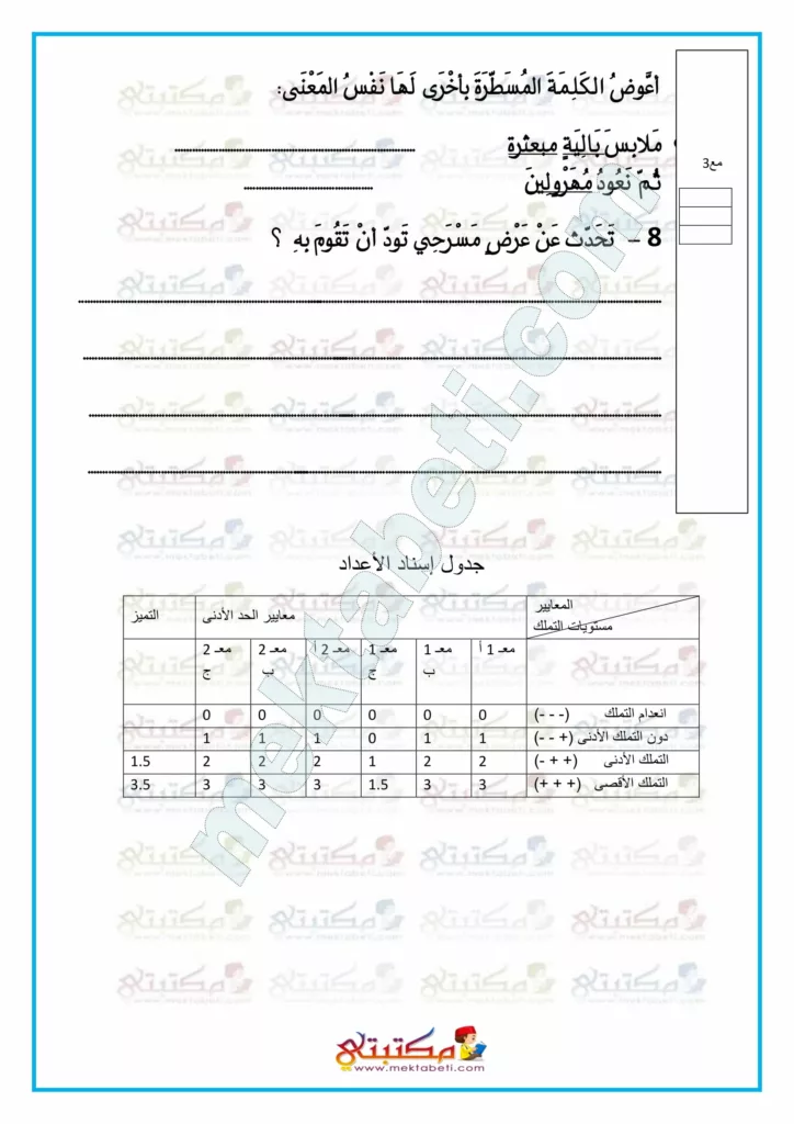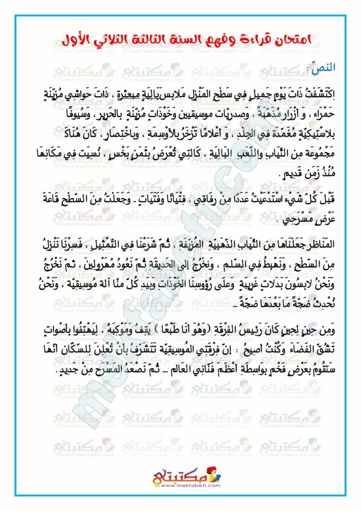 امتحان قراءة وفهم السنة الثالثة الثلاثي الأول