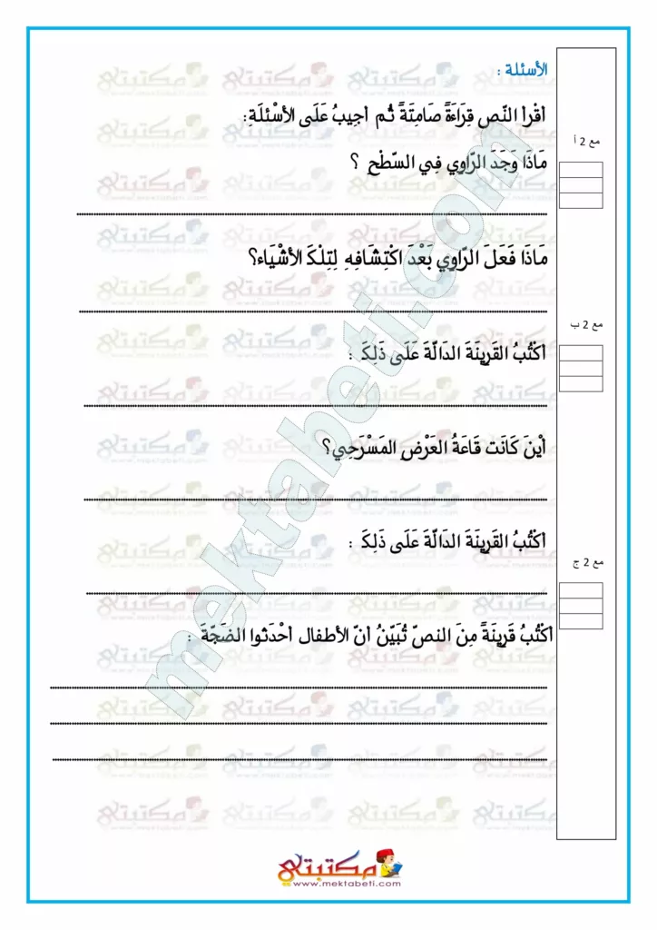 أقْرأ النّص قِرَاءَةً صَامِتَةً ثُم أجِيبُ عَلَى الأسْئلَةِ :